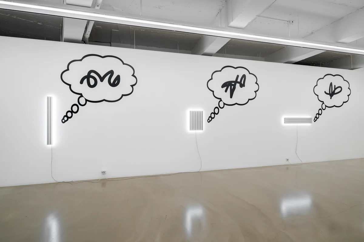 전시 개요 OVERVIEW 갤러리바톤은 2023년 10월 6일부터 11월 11일까지 동시대 미술계를 주도하는 주요 작가인 리암 길릭(b. 1964)의 개인전 《The Alterants(변화의 주역들)》을 한남동 전시 공간에서 개최한다. 관계 미학의 태동과 심화에 지대한 공헌을 한 길릭은 순수미술 외에도 출판, 디자인, 전시 기획 등 다방면에 걸쳐 자신의 예술세계를 진일보 시켜왔다. 이번 바톤과의 세 번째 개인전에서는 처음으로 발표하는 라이팅 부조 시리즈와 그래픽 기호 형태의 새로운 평면 시도들을 선보인다. 두 곳의 전시장에는 일련의 라이팅 부조 작품이 수수께끼 같은 그래픽 기호들과 병행하여 설치되어 있다. 먼저, 라이팅 부조들을 살펴보면, 작가에 의해 세심하게 설계된 수평/수직의 구조를 가진 경량 알루미늄(T 슬롯)과 후면에 숨겨진 LED 라이트가 결합한 정교한 구조체이다. 길릭의 이전 전시에서는 산업적 부재료가 특정한 패턴으로 도색되고 배열됨으로써 “대량생산과 소비의 시대”를 은유하였다. 반면, 이번 신작들은 재료 본연의 색채를 지닌 정교한 물성의 긴 육면체와 건조한 백색광의 조합으로 특징되며, 정확한 용처가 불분명한 정밀기기 또는 컴퓨터들의 군집으로 대표되는 AI, 바이오메디컬, 가상 현실, 반도체 등 “포스트 산업 시대”가 새롭게 도래하고 있음에 대한 표지적 의미를 내포한다. 함께 이웃한 그래픽 기호 작업은 라이팅 부조 작업들이 상징하는 포스트 산업 시대에서 필연적으로 연관된 새로운 언어와 기호들이 등장할 것이라는 길릭의 선언과도 같다. 거의 한 세기 전에 고안되고 국제적으로 통용돼 온 아이소타이프(ISOTYPE, 국제 그림 언어 체계)는 복잡한 통계 정보를 대중들이 알기 쉽게 전달하고자 고안되었으며, 우리가 뉴스 등에서 빈번하게 접하는 인포그래픽의 효시라고 할 수 있다. 자동차 이미지를 중첩하여 연도별 판매 대수를 표시한다거나, 주사기의 길이로 백신 접종자 수를 표시하는 등의 방법은 그 이미지가 가진 직관성으로 인해 효율적인 정보 전달을 도와왔다. 반면, 내연 기관 및 컨베이어 벨트의 소멸로 대변되며 AI와 로봇의 주도로 인간의 노동이 제한적으로 투입되거나 아예 배제되는 포스트 산업 시대에서는 직관성을 확보할 수 있는 구체적 이미지나 대상의 부재로 인해 새로운 기호 체계의 등장이 필연적일 것이라고 작가는 예측한다. 이번 전시를 위해 작가가 새롭게 탄생시킨 곡선 기호는 아이소타이프에 대한 그 간의 연구를 바탕으로 개발된 그림 언어이며, 정확한 로직과 의미가 불분명한 채 “말 풍선”의 형태로 전시장 이곳저곳에 고요히 존재한다. 나란히 걸린 라이팅 부조 작업은 단단한 외형과 작품 후면을 균질하게 감싸는 조명이 조화를 이루며 복잡한 알고리즘에 의해 작동하는 시스템이 마치 순조롭게 구동되는 듯한 분위기를 풍긴다. 인접한 기호들은 그것의 표현 방식(말풍선)으로 인해 외부 시현을 위해 인위적으로 특정한 상태임을 표시하고 있는 임시의 “상태 표시창”처럼 보인다. 직관적으로 그 의미를 알 수 없는 기호는 우리에게 즉각 익숙한 경쾌하고 유머러스한 분위기를 풍기는 동시에, 어떠한 첨단 생산 과정이 원활하게 작동되고 있음을 표시하기 위해 저명한 국제단체가 고안해 낸 듯한 위계 또한 드러낸다. 《The Alterants》 또한 생산 과정에 결부된 인간과 그 삶이 가진 다양한 교차점에 대한 작가의 오랜 관심을 서술한다. 서두에서 언급했듯이 전시 작품들은 오늘날 생산과 소비의 기호학적 복합성을 이해할 수 있는 새로운 종류의 시각화된 국제적인 기호 체계가 등장해야 함을 피력한다. 작가에 의하면 이 새로운 체제가 바로 전시 제목인 “The Alterants(변화의 주역들)”이다. 특정한 의도하에 치밀하게 배치된 작품들은 “변화”에 수반되는 다양한 부수적인 감정(생경함, 전환, 탈피, 진보, 발전, 모험 등) 또한 간접적으로 경험하도록 하는데, 이는 시시각각 다가오는 포스트 산업 시대의 큰 물결 하에서 우리가 세계 도처에서 조우할 새로운 체계와의 대면이 불러올 다양한 경험을 전시를 통해 예측해 볼 수 있도록 돕는다.
