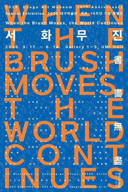 《서화무진》은 시대를 초월해 붓끝으로 세계를 빚어낸 예술가들의 이야기다. 이들의 마법같은 붓끝이 남긴 흔적들은 곧 기운생동(氣韻生動)하는 생명의 기록이자, 끝을 알 수 없이 이어지는 무한한 세계의 투영이다. 이번 전시 《서화무진 When the Brush Moves, the World Continues》은 예술가들의 붓끝에서 시작된 작은 움직임이 어떻게 거대한 예술적 조류가 되어 우리의 오늘을 관통하고 있는지 조명하고자 한다. 시(詩), 서(書), 화(畵)는 한 시대의 정신을 담는 세 갈래의 예술이자, 옛 문인들이 세계를 표현하던 가장 섬세한 언어였다. 정선의 진경산수에는 조선의 산하가 숨 쉬고, 김홍도의 풍속화는 삶의 숨결을 그려내며, 김정희의 추사체는 한 글자에 사유의 깊이를 새겼다. 이 전시는 그들의 예술혼에서 오늘의 한국화로 이어지는 시서화의 계보를 탐색한다. 붓과 먹, 한지 위에서 시간은 흐르고, 예술의 본질은 변주된다. 현대의 작가들은 전통의 기법과 정신을 계승하면서도, 자신만의 감각과 언어로 새로운 ‘시서화’를 써 내려가고 있다. 전시는 크게 1부와 2부, 그리고 어미홀로 구성된다. 먼저 1부 《붓이 움직일 때,》에서는 한국 전통 회화의 현대적 계승과 변용을 함께 마주한다. 화가들의 필묵에는 자연의 섭리와 인간의 내면이 응축되어 있다. 이들의 붓질은 단순히 형상을 재현하는 것에 그치지 않고, 보이지 않는 정신의 세계를 가시화하는 귀한 첫 발자국이 된다. 이어 2부 《세상은 이어지고》에서는 그 오래된 붓질이 현대라는 시간의 층위 위에서 어떻게 변주되고 확장되는지 살핀다. 기법의 경계를 허물고 재료의 한계를 넘어서며, 한국화는 ‘지금, 여기’의 세상을 담아내는 유연하고도 강인한 생명력을 증명한다. 어미홀 《천지, 근원에 대한 그리움》에서는 세대를 달리하는 네 명의 작가들이 철학적, 종교적, 관념적 고민을 반영한 세상의 풍경을 제안한다. 이들이 세상을 바라보고 담아낸 각기 다른 풍경들이 모여 어미홀에서 조화롭게 펼쳐진다. 다채로운 시대상과 작가들이 함께 하는 이 전시는 한국미의 어제와 오늘, 그리고 내일을 마주하며 시대의 경계를 넘어 우리 안의 예술적 감수성과 사유의 깊이를 일깨우는 자리가 될 것이다. 붓이 멈추지 않는 한, 한국화가 그리는 세계는 끝없이 이어진다. 이 전시가 시공간을 초월하는 한국화의 무한한 세계를 경험하는 귀한 기회가 되기를 바란다. 출처: 대구미술관