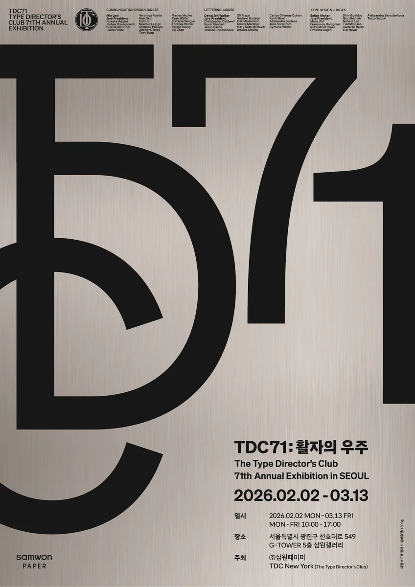 TDC 71은 활자 디자인의 혁신적 시도와 다채로운 표현을 탐색하는, 동시대 타이포그래피의 정수를 보여주는 전시이다.