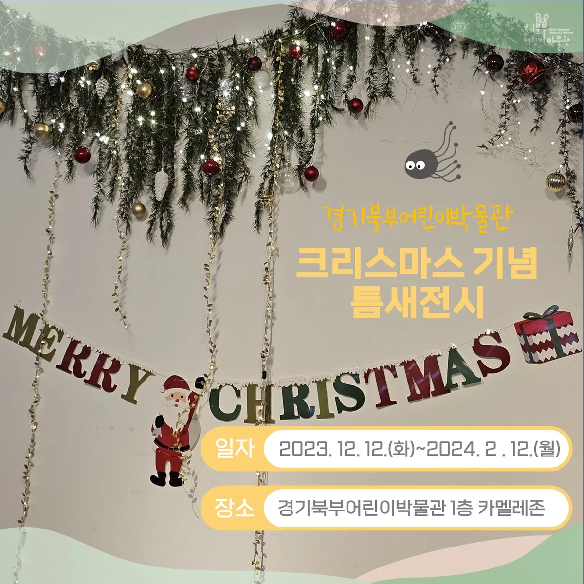 크리스마스를 맞이하여 경기북부어린이박물관 1층 카멜레존에 크리스마스 포토존과 2023 생태로 만나는 음악이야기 가족음악극 결과 전시를 운영 중입니다. 추운 겨울, 박물관에 놀러오셔서 전시도 관람하고 연말 분위기도 즐겨 보세요! TAG #경기북부어린이박물관 # 어린이체험전시 # 가족음악극 # 크리스마스 이전 목록 다음 콘텐츠 정보에 만족하십니까? 만족 보통 불만족 확인