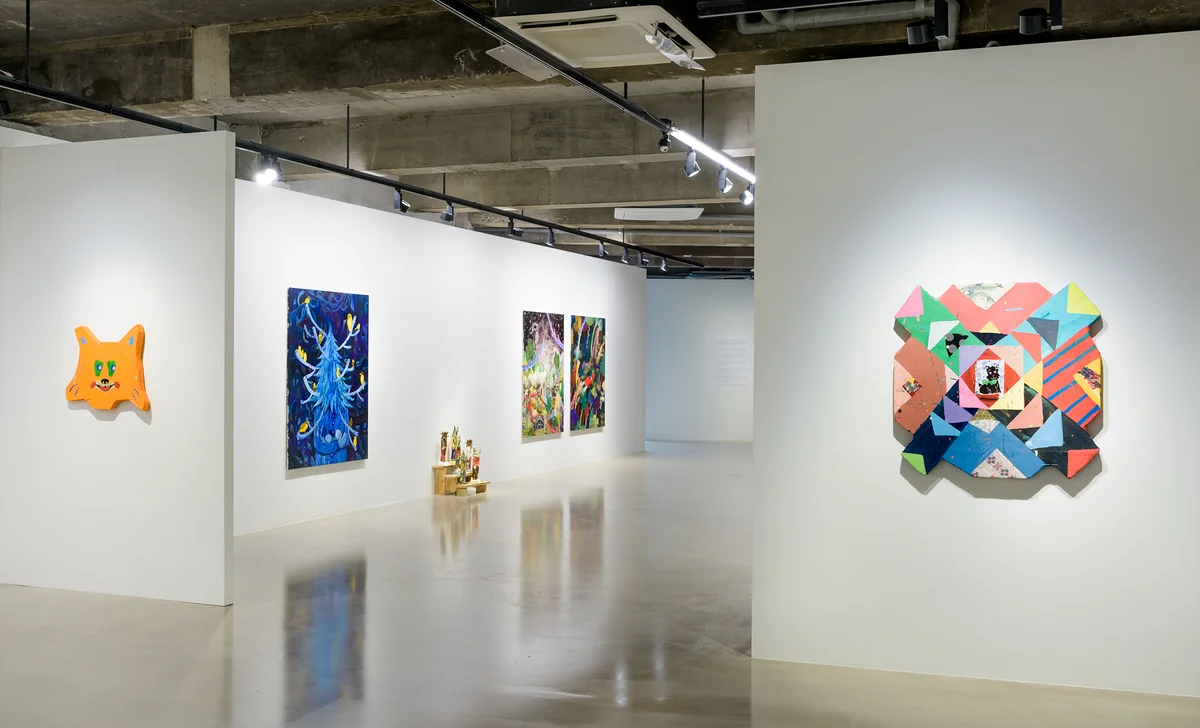 전시 개요 OVERVIEW 갤러리바톤은 6월 28일부터 7월 31일까지 국내외 5명의 신진작가가 참여하는 《시그너스 루프(Cygnus Loop, 백조자리)》전을 개최한다. 이 전시는 평면 회화를 매개로 미국, 유럽, 일본에서 각자 활발히 자신의 영역을 개척해온 젊은 작가들의 대표작을 통해 그들의 작품 세계를 살펴봄과 동시에 다층적으로 분화하고 있는 동시대 페인터들의 지향점을 모색해 보고자 함에 있다. 미술가에게 있어 ‘조형 의지’는 붓을 들거나 점토를 주물럭 거리고, 소재를 어루만지며 물성을 탐구하게끔 이끄는 시발점이다. 불현듯 떠오르는 ‘조형 의지’는 창작에 대한 욕구가 발화되는 지점인 반면, 빠른 속도로 이러한 최초의 의도가 변질되어 부분 부분 끊임없이 첨삭이 요구되는 시점이기도 하다. 애초에 품었던 ‘조형 의지’의 휘발성, 즉 소멸과 변형은 작가 고유의 스타일(Style) 구축을 통해 효과적으로 저항하고 극복할 수 있다. 작가 자신만의 기호이기도 한 스타일은 빈출하는 이미지 및 선호하는 색채와 테크닉으로 정의되며, 표현하고자 했던 대상의 외각을 지지하고 빠르게 변질되는 세부 스토리와 배경 등 부수적인 요소들을 붙잡아 놓는 일종의 대응 기제이다. 창작 시간과 수반되는 고뇌와 시행착오는 스타일의 구축을 위해 필연적인 과정이나, 이를 통해서 묘사의 능란함과 비범한 일률성에 다다를 수 있으므로 작가로써는 거쳐야 하는 중요한 과정이기도 하다. 설치, 비디오, 회화 등의 다양한 장르를 넘나드는 벨기에 작가 리너스 반 데 벨데(Rinus Van de Velde, b. 1983)는 자신의 트레이드마크이기도 한 대형 목탄 페인팅 근작을 선보인다. 명암이 강조된 거친 필치로 작가 자신 혹은 실물 크기의 인물의 이미지와 그 아래에 등장하는 미묘한 의미의 불특정 텍스트는, 자막이 활성화된 영화의 한 장면을 떠올리게 하고 즉각적으로 문장과 이미지 간의 상관관계를 탐구하도록 이끈다. 리너스의 작품에 있어 이러한 내레이션과 독백은 작품의 함의를 한껏 고조시키며, 특정한 시공간을 점유한 현실과 가상이 혼재된 장면과 풍경에 여러 가지 개연성을 부여하고 현실성을 배가시킨다. 작가 자신과 자신의 삶을 둘러싼 일상과 기억, 경험 등에서 영감을 받아, 헤타-우마적(Heta-uma) 접근법으로 다양한 원색과 거침없는 필치로 사람, 동물과 사물이 어우러져 있는 작품을 선보여 온 일본 작가 미사키 카와이(Misaki Kawai, b. 1978)는 컷 아웃(Cut-out) 기법을 활용한 다채로운 색상의 콜라주 작품을 선보인다. 바탕과 대비되는 원색의 종이와 천 조각들은 서로의 경계를 탐구하며 하나의 형상을 구성하는데, 의도적으로 테크닉과 기교가 방임되고 자유로운 드로잉과 색의 혼합이 이끌어낸 화면에서는 원색의 색면들의 의외의 조화와 분출하는 에너지감이 눈에 띈다. 배윤환(Bae Yoon Hwan, b. 1983)은 자신이 직간접적으로 겪은 일과 사회적 이슈, 떠도는 이야기, 루머, 정치적 사건 등을 고유의 방식으로 풀어낸다. 대형 캔버스에 콩테, 오일 파스텔, 물감 등으로 묘사된 수많은 이미지들은 서로 뒤엉켜서 복잡다단하고 다층적인 서사 구조를 만들어 내는데, 이는 배윤환이 품고 있는 특정한 사건과 납득하기 어려운 사회의 한 단면에 대한 주관적인 해석이다. 이미지와 이야기의 과부하와 상호 교란, 비선형적이고 왜곡된 정보 체계를 탐닉하는 현대 사회의 단면들은 여러 형태의 모습으로 분하며, 뫼비우스의 띠와 같이 처음과 마지막이 혼재된 역동적인 화면을 구성한다. 유이치 히라코(Yuichi Hirako, b. 1982)는 공통적으로 인간과 나무의 하이브리드적 형상을 주제로 작업을 해 왔다. ‘자연’이라는 순환계의 핵심이자 동식물이 의식주를 위탁하고 있는 숲은 일본에서는 일종의 신성한 장소로도 간주되는데, 인간의 외형과 유사한 캐릭터는 숲속에서 유유자적하며 다른 생명체와 공생하며 일상을 보내는 것으로 묘사된다. 모든 자연을 통일된 하나의 전체화된 개념에서 조망하는 심층 생태학(Deep ecology) 관점과도 연결되어 있는 유이치의 작품은, 작품 자