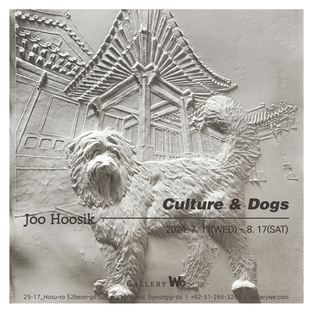 전시 개요 OVERVIEW 인간과 가장 친한 동물, 스스로 인간과 살기를 선택해 오랫동안 함께해온 ‘개’. 개의 이미지를 통해 존재와 관계, 유대와 공존의 메시지를 전해온 주후식 작가가 이번에는 우리나라의 토종견과 문화유산의 조화를 통한 새로운 이야기를 선보인다. 개에 관한 작업은 동물의 눈에 비친 인간세계를 풍자한 조지 오웰의 소설 ‘동물농장’에서 시작되었다. 잠을 자고, 장난치고, 예쁘게 앉아 경청하는 모습은 인간과 삶을 함께하는 개 그대로다. 마치 살아있는 듯 생생하고 섬세하다. 하지만 시선을 붙들어 매는 얼굴 속 눈동자는 인간의 것이다. 혹은 안경을 씌워 눈을 대리한다. 감정이 담긴 그 눈동자들이 인간과 다름없는 생명체로서의 묵직한 존재감을 전한다. 갤러리위에서 열리는 초대전 ‘Culture & Dogs’를 통해 새롭게 선보이는 작업에는 우리나라의 궁궐, 성덕대왕신종, 달항아리 등을 배경으로 진돗개와 삽살개가 등장한다. 토종견으로 명맥을 이어오며 반려동물로서도 사랑 받는 견종과 전통의 산물이자 다음 세대에게도 계승되어야 할 고유한 문화유산의 접점이 과거와 현재를 아우르며 물질적•정신적 존중과 신념의 가치를 전한다. 이번 전시에는 흙으로 빚은 후 한지로 캐스팅한 부조 40여 점, 알록달록한 색상에 반짝반짝한 광택의 알루미늄과 스틸과 레진 등에 우레탄 페인팅을 한 입체 10여 점이 전시된다. 개와 인간은 다른 존재처럼 보이지만 사실 겹치고 맞닿는 운명적 공존의 길을 함께하고 있다. 저마다의 생각과 감정, 의지를 담은 개들의 모습에 집중하다 보면 생명 모두의 소중한 가치, 공존을 통한 기쁨, 다정함을 나누는 행복을 느낄 수 있을 것이다.