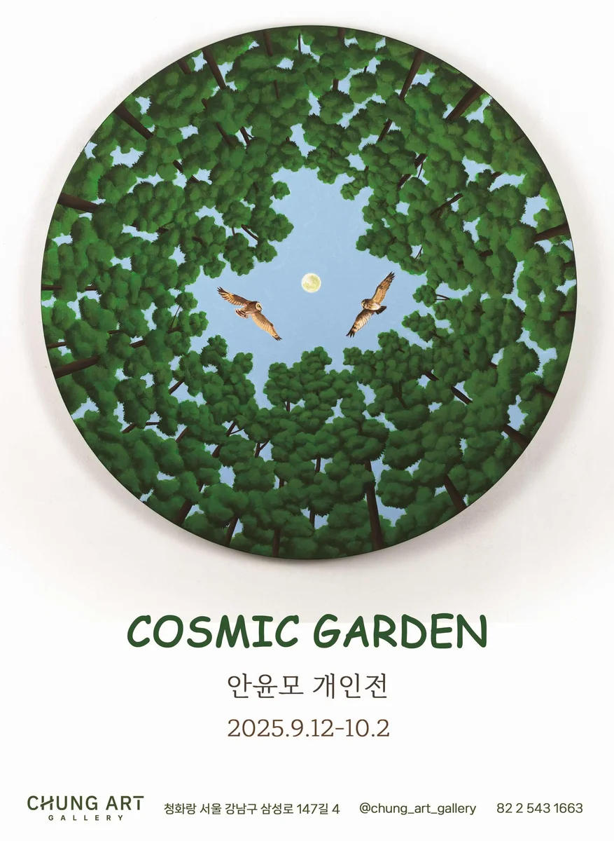 전시 개요 OVERVIEW 기간: 2025. 9.12-10.2 장소: 서울 강남구 삼성로 147길 4, 청화랑 문의: 02 543 1663 안윤모 작가는 유년시절 강원도 영월에 작은 정원이 있는 시골집에서 자랐습니다. 그 정원은 언제나 꽃으로 가득했고, 새들과 곤충들이 모여들어 하루 종일 분주하게 움직였습니다. 작은 꽃잎 하나, 풀잎 위의 이슬방울 하나에도 생명의 기운이 깃들어 있었고, 그 모든 존재들이 어우러진 정원은 하나의 우주처럼 느껴졌습니다. 작가에게 정원은 단순한 자연의 일부가 아니었습니다. 그곳은 생명과 색, 시간과 감각이 층층이 겹쳐진 내면의 우주, 그리고 세상을 향한 감수성의 출발점이었습니다. 이 전시는 그 어린 시절의 ‘우주 정원’에서 출발한 상상과 기억의 조각들로, 현대적 시선으로 재구성된 정원의 풍경입니다. 자연과 인간, 현실과 꿈, 미시와 거시가 교차하는 이 정원 속에서 관람자들도 자신만의 우주를 마주하기를 바랍니다. 어린 시절, 정원은 나만의 우주였다. 작은 풀잎 하나, 꽃잎의 흔들림, 햇살 아래 반짝이는 곤충들의 날갯짓, 그리고 바람 따라 속삭이던 새들의 노래까지 … 모든 것이 생명으로 가득 찬 하나의 작은 세계였다. 그 속에서 나는 자연과 함께 숨 쉬고, 보이지 않는 시간의 흐름과 계절의 리듬을 보았다. 정원은 내게 말없이 가르쳐주고, 무한한 상상력을 펼칠 수 있게 해준 고요한 스승이자 놀이터였다. 그곳에서 피어난 이야기들은 색으로 피어나고, 형태로, 질감으로 다시 태어났다. 자연이 전해주는 순수한 언어들이 우주의 조각으로 이어졌다. ‘우주 정원’은 그렇게 탄생했다. 나의 기억과 감정, 자연과 시간, 그리고 상상의 세계가 한데 어우러진 내면의 풍경이다. 지금도 나는 그 정원 안에서 조용히 우주를 거닐다가 하나의 이야기로 다시 돌아온다. – 안윤모