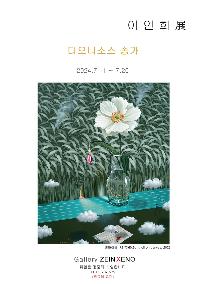 전시 개요 OVERVIEW ‘풀’ 을 그리고 동시에 지우는 이인희 작가의 작업은 기억과 망각이라는 반복적 메카니즘과 닮아있다. ‘풀숲 그리기’를 통해 생성과 소멸의 반복적 과정에 있는 인간의 기억과 삶을 성찰하는 이인희 작가의 전시가 2024년 7월11일부터 20일까지 열린다. 반복되는 풀 그리기는 결국 하나의 들판을 만들면서 동시에 은폐시키기도 하는데 열매를 맺지 않는 수많은 풀들에게 그는 인간의 삶을 투영하고 있다. <기억의 경계>, <봉인된 계절>, <영원한 현재> 등 철학적 주제를 다루어온 그는 이번 <디오니소스 송가> 전에서도 모순투성이인 인간의 본성에 대한 성찰을 이어간다. 인간 내면의 이중적인 모습, 즉 배가본드의 삶을 꿈꾸는 동시에 편안한 정착을 추구하거나 정신적인 것을 추구하면서도 물질적 가치를 갈망하고 있는 존재라는 점을 일깨우고 있다. 고결한 인간 속에도 음탕함이 정의로운 인간안에도 비열함이 불량한 인간 안에도 선량함이 존재하는 모순 마저 지극히 인간다운 것이라는 것이다. 그의 붓질로 탄생한 풀숲 사이에서는 ‘오늘 하루가 영원히 반복될 것이다’라는 멜랑콜리한 가사가 들리는 듯하다. 언뜻 영원히 현재를 살아가야 하기에 지금 이 순간을 사랑하자는 메시지 같다. 대지를 덮은 풀숲, 그 위로 드러난 모순적 상황과 사물의 관계를 통해 대체 불가능한 인간 삶의 본질을 찾는 이인희 작가는 “인간의 삶은 모순적이거나 명쾌하지 않아도 충분히 아름다울 수 있다”고 강조한다. 하늘을 향해 자라는 동시에 대지를 향하는 하나의 풀잎처럼 인간이란 이상을 꿈꾸며 동시에 현실을 향하는 모순적인 양면성을 가진 존재임을 이번 <디오니소스 송가(Dionysus Ode)> 전시를 통해 보여주고 있다. 인간을 향한 노래이자 삶에 대한 예찬인 이번 전시에서 풀숲 작품 속에 담긴 진정한 대지의 노래를 들으며 비록 우리 앞에 놓인 삶이 모순적일지라도 그런 현실마저 사랑하게 되기를 작가는 기원한다.