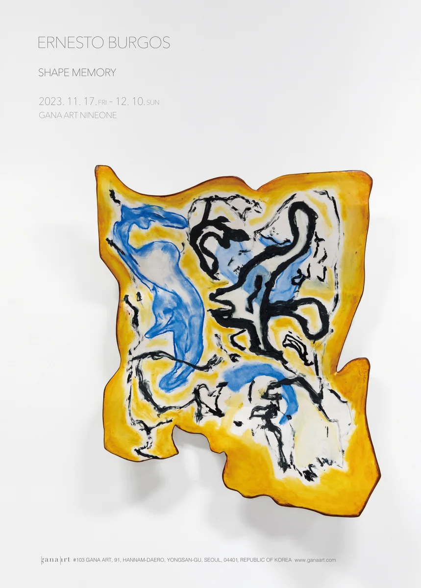전시 개요 OVERVIEW 에르네스토 버고스 개인전 가나아트는 작가 에르네스토 버고스(Ernesto Burgos, b. 1979-)의 아시아 첫 번째 개인전, 《Shape Memory》를 개최한다. 전시명 ‘Shape Memory’는 열과 같은 외부 자극에 노출되었을 때 특정 물질이 자발적으로 원래의 형상으로 돌아가는 형상기억을 뜻하는 단어로, 형태와 구조가 재구성된 오브제의 움직임을 포착하는 버고스의 예술세계를 암시한다. 곡선을 따라 유기적인 형태로 이어지는 그의 조각은 도예가 피터 불코스(Peter Voulkos, 1924-2002)의 도자 조각, 존 체임벌린(John Chamberlain, 1927- 2011)의 자동차 금속 부품으로 만든 역동적인 조각 등 미국 추상표현주의의 대표적인 조각작품을 연상시킨다. 아울러 최근 몇 년간 이어오고 있는 ‘벽면 조각’(wall-based sculpture) 작업에서 버고스는 합판, 마분지 등의 다양한 산업용 재료를 부수거나, 찢거나, 구부리는 방식으로 자유롭게 변형하고, 밀랍과 레진 등의 접착물로 입체적인 형태를 고정했다. 이때 판지의 코팅에 사용된 액체 유리섬유는 완전히 굳기까지 다소 시간이 걸리며 작가가 처음 형태를 잡은 후에도 오랫동안 천천히 움직이기 때문에, 그의 작품은 일시적인 정지 상태에서의 우연한 순간을 포착한 결과물이라 할 수 있다. 작가는 이번 개인전을 통해 재료 고유의 물성과 매체의 경계를 허무는 유기적인 작업을 선보임으로써 새로운 각도로 현대 조각의 가능성을 탐구하고자 한다.