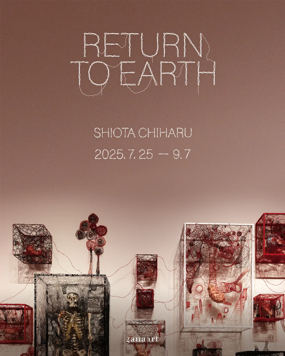 전시 개요 OVERVIEW 가나아트는 2022년 《In Memory》 이후 3년 만에 시오타 치하루(Shiota Chiharu, b.1972)의 개인전 《Return to Earth》를 개최한다. 현재 베를린을 거점으로 활동 중인 그는 프랑스 그랑 팔레 (2024), 일본 오사카 나카노시마 미술관 (2024), 미국 ICA 워터셰드 (2025) 등 세계 유수의 미술관에서 작품을 선보이며 국제적인 명성을 이어오고 있다. 특히 이번 전시는 오사카 나카노시마 미술관에서 소개한 주요 작품들을 한국에서 처음 공개하는 자리로, 작가가 오랫동안 천착해온 삶과 죽음, 실존과 정체성에 대한 사유를 담은 작품을 집약하여 선보인다. 시오타는 죽음에 대한 기억과 암 투병 경험에서 비롯된 불안을 작품에 투영해왔다. 나아가 죽음을 단순히 ‘끝’으로 바라보는 것이 아니라 새로운 시작으로 해석했으며, 이와 동시에 개인의 실존, 그리고 정체성에 대한 성찰을 이어갔다. 본 전시에 출품된 <Cell>연작에서는 유리, 실, 철사로 인체 기관을 형상화한 오브제를 통해 항암 치료 과정에서의 신체적 변화와 생물학적 회복의 메커니즘을 시각화하여 고통 속에서도 재생과 순환이 가능하다는 것을 암시한다. 작가가 오사카 나카노시마 미술관에서 미리 선보인 연작 <The Self in Others>(2024)는 해부학 모형을 통해 시간과 경험을 넘어 유지되는 자아의 본질을, 다른 한편으로는 그 자아가 외부 세계와의 접촉을 통해 끊임없이 재형성됨을 보여준다. 특히 3전시장에서 선보이는 전시명과 동명인 설치 작품 <Return to Earth>(2025)에는 시오타의 철학이 응축되어 드러난다. 작가는 전시장의 천장에서부터 서로 얽혀 내려오는 검은 실과 바닥에 흙더미를 배치함으로써 인간 존재가 자연으로부터 비롯되어 다시 그곳으로 회귀한다는 순환적 사고를 시각화하고, 자아와 세계, 삶과 죽음의 경계를 교차하는 구조를 형상화한다. 이처럼 그의 작업은 개인적 서사의 발화를 넘어, 상실과 그로 인한 고통을 예술을 통해 치유하는 과정을 보여줌으로써, 오늘날 우리가 다시 사유해야 할 인간 존재의 본질적 조건을 환기시킨다. 이로써 시오타 치하루의 작품은 가시적인 세계와 보이지 않는 내면 사이를 넘나들며 인간 존재의 근원에 다가가는 방식을 보여주는데, 이는 예술이 여전히 세계를 인식하고 인간을 성찰하게 하는 주요한 사유의 도구로 기능할 수 있음을 보여주는 증거이기도 하다.