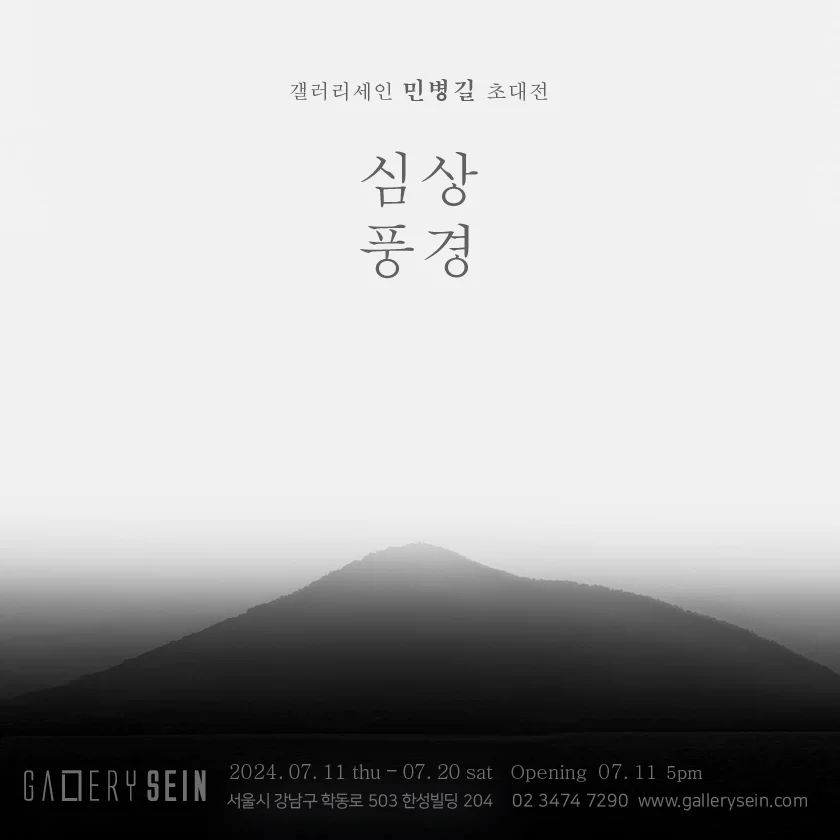 전시 개요 OVERVIEW 2024. 7. 11(목) – 7. 20(토) 갤러리세인에서는 사진작가 민병길의 23번째 개인전을 개최한다. 1993년 첫 사진전을 시작으로 필름카메라를 고수하는 작가의 작품세계를 더욱 깊이 있게 들여다볼 수 있는 전시이다. 우리가 살아가는 세상은 온통 이미지와 정보들로 가득하다. 스스로 사고하는 힘은 점점 줄어들고, 기회도 줄어들고 있다. 그러다 보니 우리는 산과 바다와 같은 자연으로 벗어나고 싶어한다. 또한 공간자체가 아무런 정보도 주지 않고 깨끗한 미니멀 라이프를 추구하기도 한다. 민병길 작가의 작품은 복잡하고 이야기거리가 많은 우리 삶을 한 템포 쉴 수 있게 하는 자유를 준다. 작품 속 자연의 풍경과 비어 있는 여백을 통해 우리를 끊임없이 압박하는 시간과 공간적 제약을 극복할 수 있게 한다. 이번 전시 주제이자 작품 전반의 타이틀은 ‘심상풍경’ 이다. 그리고 덧붙이는 부제는 ‘질료들의 재배치’이다. 부제에서도 알 수 있듯이 작가의 작품들은 아리스토텔레스의 철학의 용어와 의미가 맞닿아 있다. 아리스토텔레스는 모든 사물의 본질적인 형상은 각각의 개별적인 사물내에 내재해 있으며, 형상은 신비한 독립적인 존재가 아닌 질료와 함께 실체를 구성한다고 하였다. 예술에 있어서도 우리의 인지 영역을 넘어 존재하는 어떤 물질(질료)에 대한 탐구와 추적에 관계한다. 형상을 단순히 모방하는 것이 아닌 관찰과 경험을 통한 정신의 반영이라고 볼 수 있다. 따라서, 작가의 사진에서 대상이 되는 모든 자연물들은 질료가 되고, 그 질료가 작가에게 재료로 번역되어 재배치(Rearrangement)된다. 여기서 재배치는 작가가 사진에 담을 대상이자 질료를 그대로 사진에 옮겨오는 ‘재현’이 아니라 작가의 경험, 기억, 인지와 같은 개인적인 스토리가 작동되어 작가만의 시선으로 재해석한 이미지로 화면에 표현되는 것이다. 결국 작가가 자신의 사진을 통해 보여주고자 한 것은 풍경의 실체가 아니다. 그 아름다운 대상을 질료로 하여 작가의 인식적 경험이 깃든 행위들이 더해져 만들어낸 풍경이자 예술을 전달하고자 하는 것이다. 작가는 아름다움이란 외적인 것만이 아니라, 아름다워질 수 있는 행위를 통해 완성된다고 말한다. 풍경이 아름답다고 여겨지는 것은 형형색색의 아름다움이 아닌 자연을 구성하는 계절, 날씨, 순환 등의 모든 과정이 아름다운 것이라고 볼 수 있다. 따라서 작가에게는 ‘안개’가 풍경사진을 방해하는 요소가 아닌 아름다운 자연의 그 자체일 뿐이다. 이것은 사진 속 풍경에서 모든 존재들은 모두 평등하다. 꾸미려고 하는 불필요한 욕망이 제거된 작품 속 대상들은 어느 하나 아름답지 않은 것이 없다. 안개 가득한 흑백의 풍경은 종이에 먹이 번지 듯 수묵화와 같은 분위기를 자아내고, 추상화에 가깝게 다가오기도 한다. 이와 같은 회화적인 감성은 뚜렷한 형상이 없는 안개를 인화지에 담아내기 위해 공기와 다른 미세한 흔들림을 표현해내기 위한 작가의 노력의 결과물이다. 작가의 감각이 담긴 안개 속에 잠겨버린 풍경을 응시하고 있으면 사진이라는 매체를 잊은 채 아주 천천히 작가의 이미지 속에 빠져들게 된다. 적절하게 생략과 표현이 가미된 이미지들의 여백을 통해 우리는 느리게 사색하며, 가슴속에 아련히 떠오르는 ‘심상풍경’을 경험할 수 있다. 전시된 작품의 전반은 흑백사진이지만 아주 미세하게 색이 들어간 작품이 2점 있다. 이 작품들 또한 바다와 안개 가득한 하늘의 수평선 말고는 가시적으로 드러나는 것이 없다. 흑백사진보다 더욱 더 절제되어 있다. 풍경의 아름다움을 담을 때, 작가는 질료에 집중하여 흑백의 농담 만으로도 자연 그 자체를 표현하는 데 무리가 없다고 본다. 색이 가미된 작품에서는 더욱더 디테일을 감소시켜 흑백의 여백처럼 사유와 사색의 공간으로 채울 수 있게 한다. 이번 전시를 통해 민병길 작가의 회화적이고 담백한 사진을 바라보게 되면, 현실을 넘어서 스스로 사고하고 사유하는 시간을 가질 수 있을 것이다. 편리함과 빠른 속도, 많은 정보와 다양한 기술이 넘치는 디지털 시대에 우리가 잊고 있던 필름 카메라와 흑백사진의