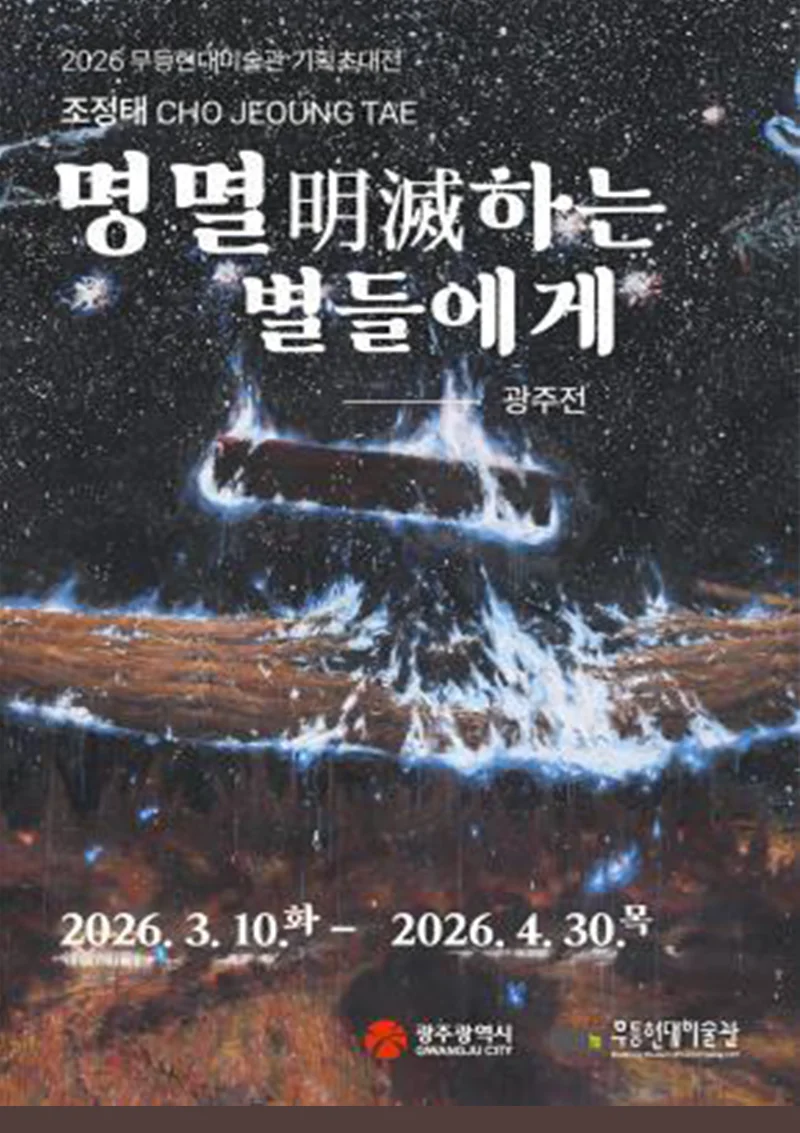 역사와 소시민의 삶을 깊이 있게 탐구해 온 화가 조정태가 2026년 3월 10일부터 4월 30일까지 한 달간 무등현대미술관에서 개인전 ‘명멸하는 별들에게’를 개최한다. 이번 전시는 2025년 서울전에 이어 주요 활동지인 광주에서 진행되는 순회 전시 성격으로, 작가의 예술적 역량이 집중된 대작 위주의 작품 10여 점을 엄선하여 소개한다. 조정태 작가가 2012년부터 10여 년간 천착해 온 <별이 된 사람들> 연작은 작가 개인의 실체를 탐색하는 과정이자, 민중미술 작가로서 체화된 역사적 세계관을 별자리의 이야기로 풀어낸 결과물이다. 작가는 별을 통해 역사의 진보를 위해 희생된 이들을 기리는 동시에, 우리 삶 속에 여전히 살아남은 어떤 순수한 것을 상징화한다. 이는 경직된 역사주의 이념에 대한 성찰이며 개별적인 삶의 조각들이 모여 이루는 윤리적 세계관의 표현이기도 하다. 그의 작업은 자아를 찾는 나르시시즘에 머물지 않고 역사를 재현하는 새로운 방식을 끊임없이 사유해 왔음을 보여준다. 조정태 작가는 조선대학교 미술대학 회화과를 졸업하고 전남대학교 대학원을 수료하였으며, 광주시립미술관 북경창작스튜디오 입주작가(2016) 및 운영자문위원을 역임하는 등 지역 미술계의 중추적인 역할을 해왔다. 특히 14회의 개인전을 비롯해 국립현대미술관 공립미술관 추천작가-전문가 매칭 지원 전시인 《생동하는 기억, 감각의 은유》, 5·18 민주화운동 40주년 특별전 《별이 된 사람들》 등 다수의 기획전에 참여하며 독보적인 작품 세계를 구축하고 있다. 무등현대미술관 정송규 관장은 “이번 전시는 작가가 오랫동안 역사를 관통하며 획득한 윤리적 사유와 인간에 대한 연민과 존중을 대형 캔버스를 통해 마주할 수 있는 소중한 기회가 될 것”이라고 밝혔다.