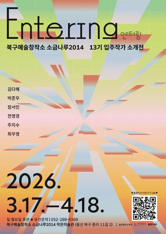 개요 전시 > 다른지역 전시 기간 2026.03.17.(화) ~ 2026.04.18.(토) 장소 북구예술창작소 소금나루2014