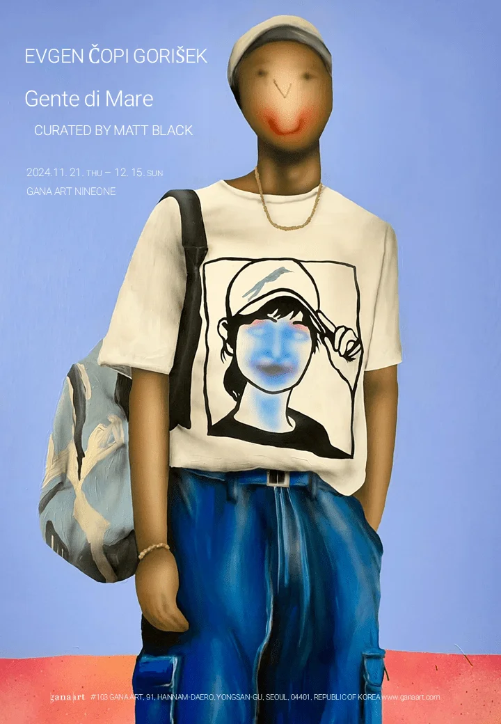 전시 개요 OVERVIEW 가나아트는 2020년 개관한 가나아트 나인원의 마지막 전시로, 이브겐 코피 고리섹(Evgen Čopi Gorišek, 1994-)의 개인전 《Gente di Mare》를 개최한다. 슬로베니아 출신의 고리섹은 단순하면서도 강렬한 ‘포 나이프(faux naïf, 거짓 순수)’ 화풍으로 알려져 있으며, 대중문화와 디지털 시대의 단면을 풍자적으로 재해석하는 작품으로 주목받고 있다. 작품 속 인물들은 흐릿한 이목구비와 감정을 숨긴 듯한 미소를 짓고 있어, 현대 사회의 피상적인 소통과 관계를 암시한다. 큐레이터 맷 블랙(Matt Black)과의 협업으로 기획된 이번 전시는 진정한 소통이란 무엇인지에 대한 고리섹의 깊은 고민을 담아내고 있다. 작가는 빠르게 변화하는 현대 사회 속에서 잃어버린 ‘느림의 미학’을 재발견하며, 이를 관람객들과 공유하고자 한다. 전시 제목 《Gente di Mare》는 이탈리아 가수 움베르토 토찌(Umberto Tozzi)의 명곡에서 영감을 받아, 남부 해안가의 평화로운 삶과 따뜻한 인간적 교감을 상징적으로 담아낸다. 이번 전시에서 선보이는 작품들은 지난 4년 동안 남부 이탈리아 해안가에서 경험한 작가의 일상과 예술적 여정을 기록하고 있다. 그의 신작은 느긋한 삶에 대한 찬가로, 일상의 진정한 아름다움이란 따뜻함과 단순함 속에 깃들어 있음을 관람객들에게 전하고 있다.