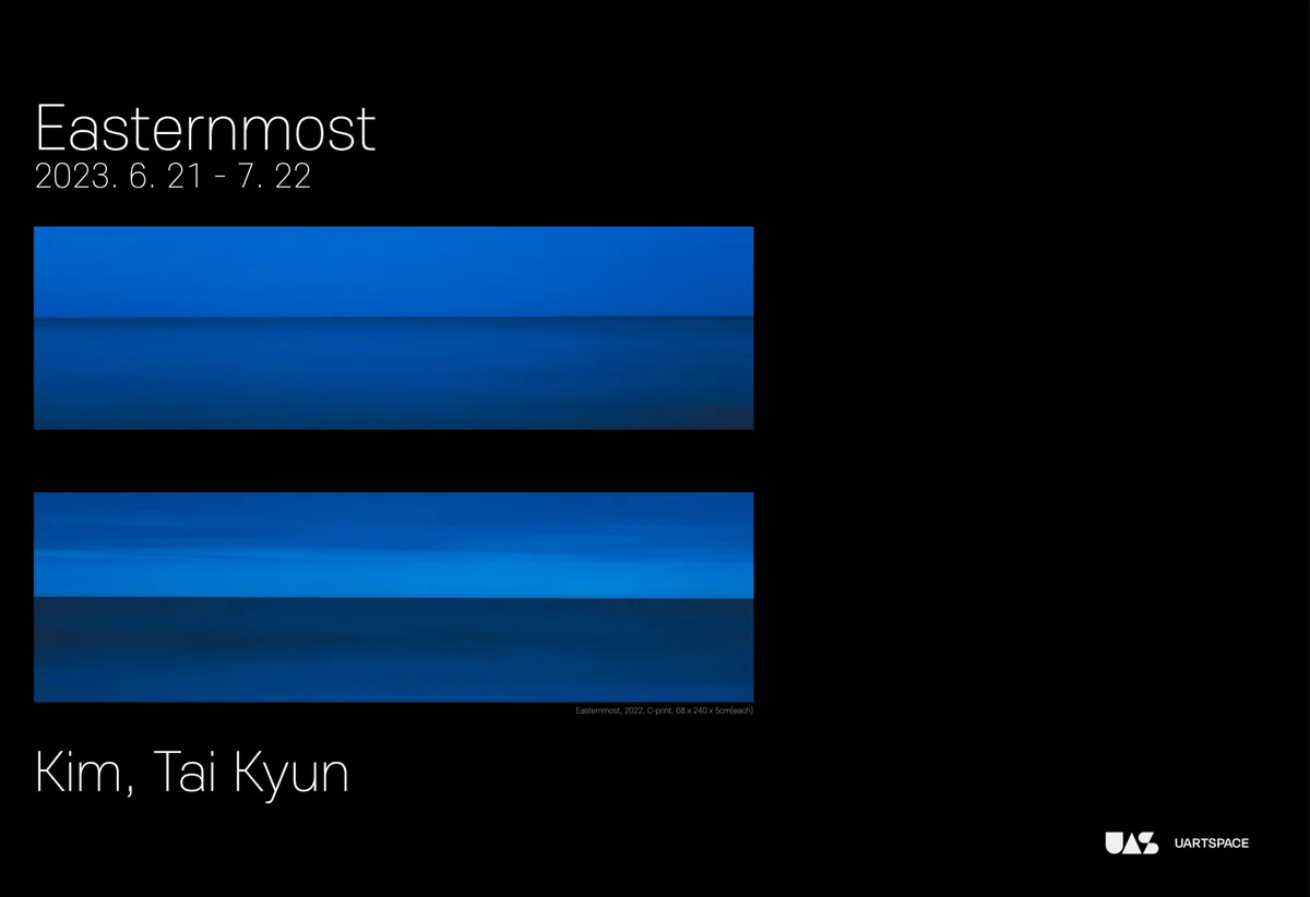 전시 개요 OVERVIEW 유아트스페이스에서는 2023년 6월 21일부터 7월 22일까지 김태균 개인전 ‘동쪽 끝에서’ 가 진행된다. 작가는 바다와 맞닿은 하늘을 바라본다. 바다와 하늘이 닿은 수평선은 균형 잡혀 있지만 묘한 긴장감이 감돌고, 보정하지 않은 자연의 푸른색은 깊이 있게 화면을 압도하며 드러내는 존재감이다. 이번 전시는 2022년 힌남노 태풍을 포착한 작업들도 전시된다. 푸른 바다와 대비되는 폭풍 속의 바다는 평화로운 화면 아래 변화무쌍한 바다의 무수한 이야기들을 담고 있다. 고요하나 강렬한 작가 시선은 블루 스펙트럼의 영역 안의 다양한 블루로, 수많은 시간 속 찰나의 순간이다. 김태균의 마음을 이끈 동쪽 끝 어느 바닷가에서 그는 작업을 이어간다. 그곳에서, 세월과 늘 새롭게 다가오는 자연의 위대함을 작품 안에 재현한다. 오롯이 자리를 지키는 작가의 삶은 흔들리지 않는 그의 작업과도 닮아 있다.