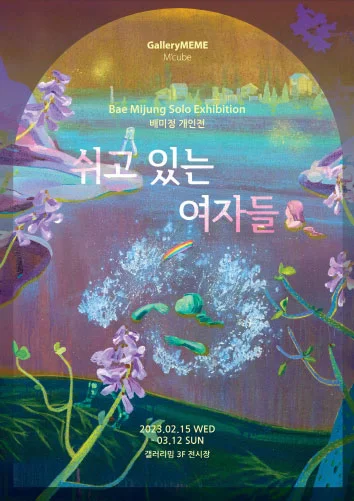 전시 개요 OVERVIEW 배미정 Bae Mijung 2008 홍익대학교 회화과 졸업 2000 동아대학교 신문방송학과 졸업 개인전 2023 갤러리밈, 서울, 한국 2021 갤러리밈, 서울, 한국 2020 프로젝트 스페이스 영등포, 서울, 한국 2018 보름산 미술관, 김포, 한국 2018 갤러리 도올, 서울, 한국 2016 Npo 지원센터 갤러리 품다, 서울, 한국 2014 갤러리 도올, 서울, 한국 2012 갤러리도스, 서울, 한국 2011 관훈갤러리 , 서울, 한국 솔로몬 아티스트 레지던시-케이크 갤러리, 서울, 한국 기획 단체전 2022 홍천미술관, 홍천, 한국 2022년 2022 오뉴월이주헌, 서울, 한국 2022 송도아트포레, 인천, 한국 2022 미학관, 서울, 한국 2022 임시공간, 인천, 한국 2022 4log Artspace, 서울, 한국 2021 스페이스mm, 서울, 한국 2020 2인전, 새탕라움, 제주, 한국 2019 인천아트플랫폼, 인천, 한국 2018 2인전 플레이스 막, 서울, 한국 2016 공간291, 서울, 한국 2016 시민청 갤러리, 서울, 한국 2016 미부아트센터, 부산, 한국 2015 복림빌딩, 서울, 한국 2015 2인전, 대안예술공간 이포, 서울, 한국 2015 인천아트플랫폼, 인천, 한국 2015 안산문화예술의전당, 안산, 한국 2014 인천아트플랫폼, 인천, 한국 2014 -진경공원팀, 시민청 갤러리, 서울, 한국 2014 인천아트플랫폼, 인천, 한국 2013 강동아트센터, 서울, 한국 2013 2인전, 대안공간 정다방프로젝트, 서울, 한국 2013 스페이스K, 과천, 한국 2012 한가람미술관, 서울, 한국 2012 키미아트 갤러리, 서울, 한국 2011 갤러리 보다 컨템포러리, 서울, 한국 2010 2인전, 프로젝트 갤러리 그날, 서울, 한국 2010 한전아트갤러리, 서울, 한국 2008 대안공간 팀프리뷰, 서울, 한국 2008 스페이스 판, 서울, 한국 2008 대안공간 도어, 서울, 한국 2008 대안공간 팀 프리뷰, 서울, 한국 수상 2015 예술활동 창작 지원금(예술인 지원) 선정, 서울문화재단 2012 34회 중앙미술대전 작가 선정, 중앙일보 2011-12 ARKO 영아트프론티어 선정, 한국문화예술위원회 2011 솔로몬레지던시-케이크갤러리 공모 하반기 전시작가 선정 레지던시 2014 인천아트플랫폼 레지던시 프로그램, 인천, 한국 작품소장 2022 국립현대미술관 미술은행, 서울, 한국 2020 서울시청 박물관과, 서울, 한국 2014 국립현대미술관 정부미술은행, 과천, 한국 출판 2021 그림에세이, 목수책방, 한국 작가노트 배미정의 작업은 대상과 대상 간의 관계성에 대한 관심에서 비롯된다. 일상의 관계와 기억의 조각들이 놓여져 있는 풍경들, 아직 해석되지 않은 추상의 조합인 세상, 그 비틀어진 틈을 그리는 풍경화이다. 〈아는 여자〉 연작은 스쳐간 여성들의 서사에서 시작하지만 서사 자체가 중요한 것은 아니다. 분절되어 존재하는 서사 속에 숨어있는 분위기와 그곳의 감정에 관한 작업이다. 몸에 새겨진 그들의 이야기가 나와 다르지 않음을 인식하고, 그렇게 ‘나’이기도 한 사람들, 바깥과 안의 경계가 모호한 세상을 회화로 시각화하고 있다. 숨겨진 서사는 목수책방에서 라는 제목의 책으로 출판되었다.