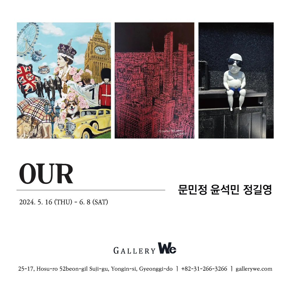 전시 개요 OVERVIEW 영남대 서양학과라는 공통의 출발점에서 시작해 각자 다른 방향의 예술 안에서 활발히 활동하고 있는 문민정, 윤석민, 정길영 3인의 전시 ‘OUR’가 갤러리위에서 열린다. 문민정 작가는 회화 작업을 하고 있다. 왕관이라는 주제 안에 욕망과 성장, 노력과 책임감 등 인간 기저의 다양한 감정을 풀어낸다. 이러한 테마를 잘 표현하기 위한 재료로 전복패를 사용한다. 가공하지 않은 전복패의 두터운 마티에르는 왕관의 이미지를 더욱 부각하고, 자연의 순환 안에서 빚어진 영롱한 빛은 왕관 안에 내포한 이야기를 상징적으로 드러낸다. 윤석민 작가는 홍익대 건축도시대학원에서 실내설계를 전공하며 개성적인 공간을 창조하는 공간디자이너가 되었다. 위트와 실험정신이 어우러진 자유롭고 독창적인 디자인으로 인테리어계의 대부로 불린다. 건축가드로잉전, 아트페스타, 아시아호텔아트페어, 어반브레이트아트페어 등에도 꾸준히 참여해 토탈아티스트로서 늘 새로운 창작을 선보이며 자신만의 예술적 파동을 넓혀가고 있다. 정길영 작가는 도예를 ‘평면과 입체로서 다룬다.’는 평을 받는 도예가가 되어 도자기의 중심인 경기도 이천과 중국 경덕진을 오가며 작품활동 중이다. 2003년 점토의 가소성과 가마 소성 후 유약색채의 변화무쌍함에 반한 그는 회화, 도예, 설치미술을 아우르며 내면의 거침없는 예술을 실현하고 있다. 작가는 ‘회화 작업인지 도예 작업인지에 대한 구분은 나에게 의미가 없다. 고매한 사상이나 담론을 전달하고자 하는 것도 아니다. 오히려 나 자신과의 대화에 가깝다고 할 수 있다.’고 전한다. 시작은 같았던 세 명의 예술가가 개별성과 독자성을 지닌 각자의 내면에 이끌려 다른 길을 걷고 있다. 갤러리 전관에 펼쳐진 이들의 작품을 통해 예술의 다양성을 즐기는 특별한 시간을 보낼 수 있을 것이다.