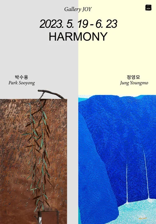 전시 개요 OVERVIEW 정영모의 회화와 박수용의 조각, 이들은 함께 할때 조화롭고 서로를 빛나게 해준다. harmony전은, 자연이 품은 서정성을 편안하고 담백하게 풀어낸 두작가의 콜라보 전시이다. 정영모의 -고향 이야기- 는 분주한 일상에 지친 현대인들에게 잊혀졌던 추억 속의 여행을 제시한다. 그림 속에 등장하는 다양한 상징을 통해 고향에 대한 향수와 순수한 동심으로 건조한 일상에 삶의 여유를 부여하여 행복한 시간을 되새기며 새로운 에너지를 충전하게 하는 작품이다. 동심의 순수한 맑은 눈으로 그림을 가까이 들여다 보고 있으면 어느새 도란도란 아름답고 정겨운 고향이야기가 들려온다. 박수용의 -산수시리즈-는 돌과 브론즈를 결합시켜 표현한 과감한 생략과 극도로 세련된 간결한 묘사가 특징이다. 또한 무한한 확장과 같은 회화적 특징들을 입체조형에 적극적으로 수용하여 여백의 미를 조형적으로 표현하여 보는이들의 사유의 폭을 확장해준다. 자연의 이치와 교감을 주제로 생명 예찬과 순환을 기저(基底)로 삼아 자연의 순리에 대해 이야기하는 조각이지만 마치 한 폭의 산수화를 보는듯한 서사구조를 갖는 작품이다. 싱그러운 초록이 눈과 마음을 사로잡는 생명이 충만한 계절, 자연을 노래한 아름다운 작품들의 절묘한 하모니에 시선을 멈추고, 소소한 행복의 여유를 느끼는 시간이 되길 바램해 본다.