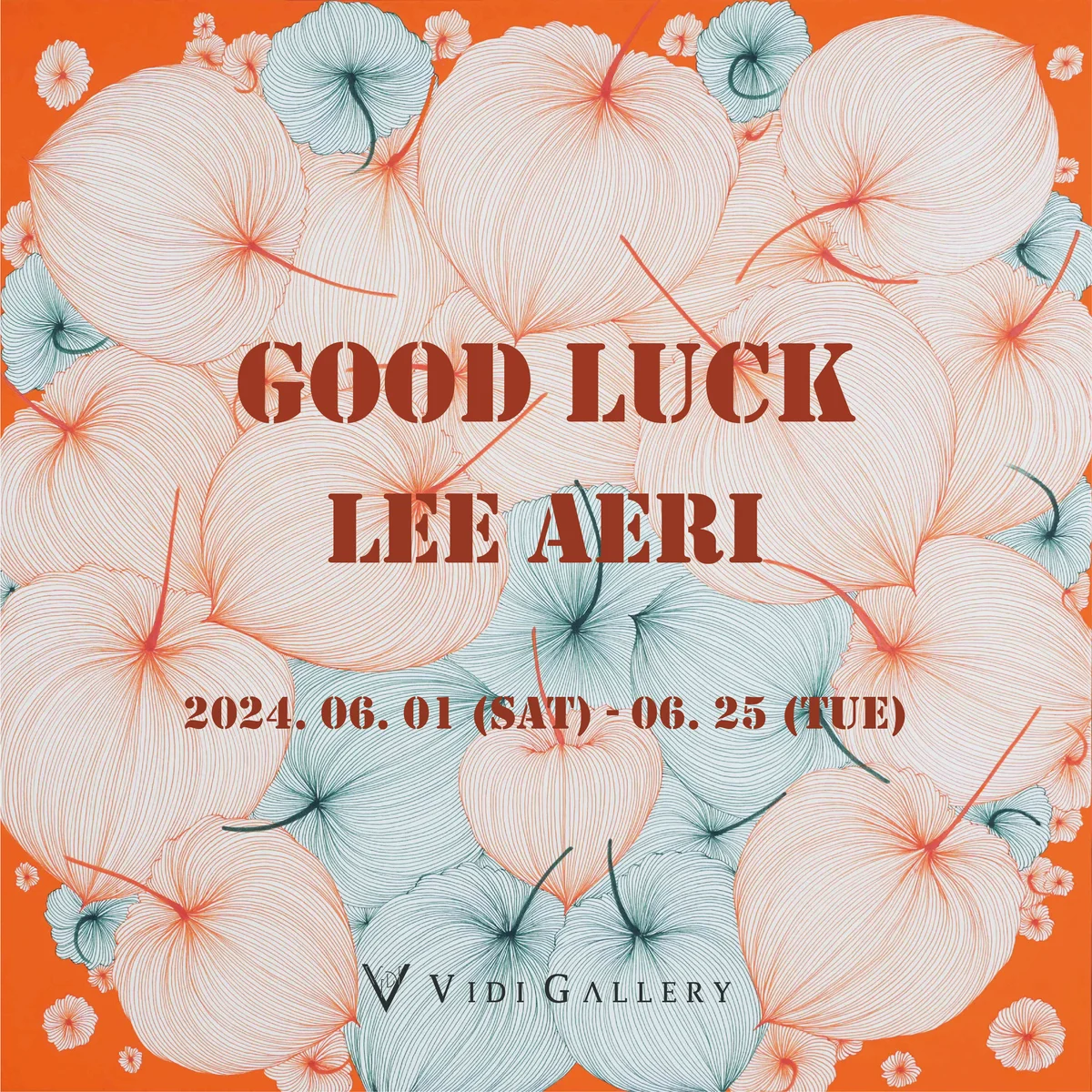전시 개요 OVERVIEW 비디갤러리는 06월 01일부터 06월 25일까지 이애리 작가의 초대 개인전인 <Good Luck>을 진행한다. 이애리 작가의 작품 속 주요 소재인 ‘꽈리’의 모습과 연관하여 동양에서는 예로부터 지금까지 다양한 상징적인 의미가 전해져 내려온다. 먼저 노리개, 복주머니를 닮았다 하여 행복과 행운, 부를 상징하고, 등 초롱의 모양으로 초롱불을 닮았다 하여 어둠을 밝힌다는 뜻으로 길상과 성공을 상징한다. 씨앗을 감싸고 있는 꽈리 형상이 마치 아기를 품은 엄마의 모습과 같다고 하여 사랑, 다산, 다복의 의미를 지니고 있다. 또한 꽈리가 귀신을 쫓는다 해서 조상의 성불을 기원할 때 장식용으로도 쓰였다고 한다. 이렇듯 꽈리는 지금까지 관상용으로도 많은 사랑을 받고 있으며 꽈리의 꽃과 열매, 그리고 잎, 뿌리 모두 현재 약재로 활용되고 있어 인간에게 아주 유익한 식물이다. 이애리 작가의 작품들은 작은 열매들과 씨앗 등이 전체적으로 어우러져 풍성하고 편안한 느낌을 전달해준다. 둥근 꽈리의 형상에 먹(주묵)으로 함축된 선과 색을 표현하고, 섬세하고 정교한 선적인 요소들로 여러 사람들의 생각과 삶의 이야기를 표현한다. 그러므로 다양한 꽈리들의 변주는 현대사회에서 다양성이 하나를 이루는 조화, 화합을 조형적으로 표현하고 있다. 둥근 꽈리의 형상은 대자연의 순환을 상징적으로 표현한 것으로 우리를 둘러싼 광활한 우주의 무한한 세계, 그리고 그 세계를 유지하는 질서를 상징하기도 한다. 산뜻하고 정감 있는 색상을 사용함과 동시에 이애리 작가 특유의 섬세하면서도 노동집약적인 기술로 부드럽게 선들을 표현하였기 때문에 작품들은 투명하면서도 깊이 있는 분위기를 형성한다. 꽈리가 가진 성공과 부, 행운과 사랑 등의 긍정적 이미지를 연상시킴과 동시에, 단아하고 정갈한 선으로 그려진 꽈리 이미지는 감상자들에게 동양적인 아름다움을 현대적으로 풀어낸 조형미를 선사한다.