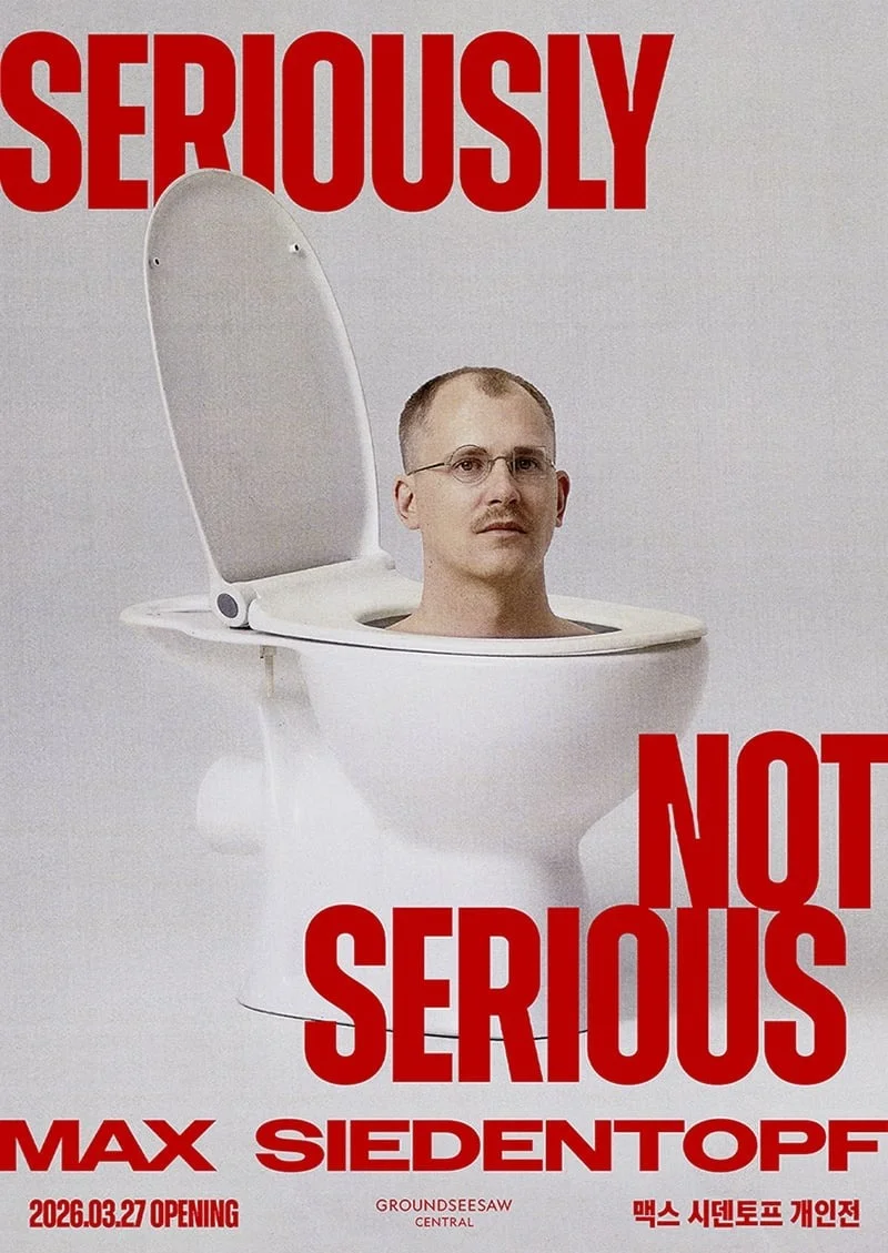SERIOUSLY NOT SERIOUS 맥스 시덴토프 개인전 ‘젠틀몬스터’, ‘제니’와 협업으로 국내 아트씬에 강렬한 인상을 남긴 컨셉추얼 아티스트. 유럽을 기반으로 활동하며 지루한 일상을 낯설게 비틀고, 그 안에 날카로운 유머를 담은 작품으로 Gucci, Nike, Apple 등 글로벌 브랜드의 러브콜을 받아왔습니다. 이번 전시는 조각·설치·사진·영상을 넘나드는 그의 작업 세계 전반을 한자리에서 소개하는 아시아 최초 개인전으로, 각각의 작품은 서로 다른 ‘무대’와 ‘상황’을 여행하듯 이어지는 옴니버스 형식으로 소개됩니다. 가벼운 웃음뒤에 남는 진지한 사유의 시간을 가져보세요. *출처: 그라운드시소 센트럴