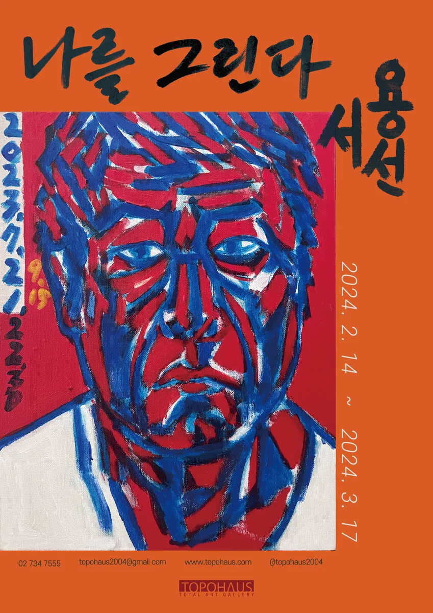 전시 개요 OVERVIEW 나를 그린다 서용선 Self-portrait Suh Yongsun ▪️일정 : 2024. 2. 14.(수) – 3. 17.(일) ▪️시간 : 오전 10시 – 오후 7시 ▪️장소 : 토포하우스 전관 서용선은 풍경, 역사, 신화, 자화상 등 폭 넓은 인문학적 주제를 회화로 풀어내는 작가이다. 사람-도시-역사라는 커다란 주제로 급성장하는 자본주의 도시 속에서 소외된 인간의 본질에 대한 끊임없는 탐구에 몰두하는 작가의 다양한 작업 가운데에서 ‘자화상’만을 보여주는 전시를 기획하였다. 작가는 자화상은 실패한 그림이라고 말한다 : “자화상은 실제로 그리는 순간 실패하는 그림이에요. 선을 긋는 순간부터 안 닮아요. 자기가 생각하는 자기의 모습은 절대 안 나와요. 그래서 화가로서 가장 비극적인 그림 중의 하나가 자화상인 거죠. 그런 점에서는 앞서 애기했던 시지프스 신화와 같은 점이 있어요. 실패를 반복하면서 어떻게든 계속 그려나가는 거죠. 그래도 먼저 그린 그림과 다음에 그린 그림은 차이가 있어요. 그것 때문에 하는 거예요. 그리고 부분적으로 조금씩 뭔가가 담겨 나가는 느낌이 있어요.” 자신을 그림 그리는 노동자라 말하는 서용선은 자화상을 통해 인간의 모습을 바라본다. 화면에서 표정 없는 얼굴로 정면을 담담하게 응시하는 작가의 모습을 마주하는 관람객은 그 그림과 말없는 대화를 나누며 자기자신을 돌아보게 된다. 작가는 미술대학에 합격하고 처음 그린 그림이 자화상이라고 한다. 캔버스 앞에 당당하게 그림을 그리는 모습의 자화상은 점차 세상을 응시하고, 대면하고, 좌절하며, 받아들이며, 또한 흥분하는 모습으로 변화되고, 그 모습은 격렬하게 그리는 행위를 하는 자신의 모습을 드러낸다. 그리고 자화상을 통해서 자신이 해체되고 다시 결합되며 새롭게 탄생한다. “자화상은 인간에 관한 것이다. 인간이라는 보편적 개념이 갖고 있는 운명의 핵심이 자아이고, 이것을 체험해 볼 수 있는 것은 자기 자신밖에 없으니까… 인간 연구를 하는데 자화상은 기본 단위이다.” 그의 작품세계는 이미 한국현대회화에서 중요한 작업으로 평가받고 있다. 국립현대미술관을 비롯하여 수많은 국내외 주요 미술관들에 그의 작품이 소장되어 있으며, 현재 국내는 물론 미국, 독일, 일본, 호주 등에서 전시가 활발히 이어지고 있다. 이번 전시에는 1995년부터 2024년까지의 자화상을 그린 회화 작품 27점, 입체 1점이 출품된다.
