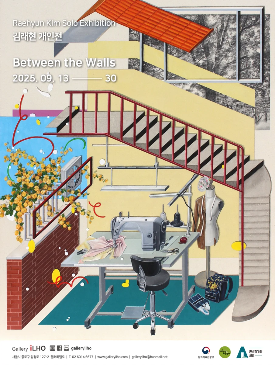 전시 개요 OVERVIEW 전시제목: Between the Walls 참여작가: 김래현 전시기간: 2025. 09. 13 (토) – 09. 30 (화) 관람시간: 10:30 – 18:00 (일, 월 휴관) 전시장소: 서울시 종로구 삼청로 127-2, 갤러리일호 작품목록: https://blog.naver.com/galleryilho/224000984256 전시개요 바야흐로 역병의 시대, 세상의 모든 이들이 역병이라는 담 안에서 위리안치(圍籬安置)를 경험하며 몇 년이 흘렸다. 인간관계의 시작이 집 앞에 놓이는 택배와 배달음식으로 끝나는 경험은 모든 단어 앞에 ‘집’을 붙여 재택근무와 홈 스쿨링, 홈 카페 등등이 일상으로 자리 잡은 시대가 도래했다. 혼자 지내는 이들은 더더욱 다른 이들의 얼굴을 마주하며 지내는 것이 어색해졌고 가족을 볼 시간 없이 외부활동을 이어가던 현대인들은 갑작스러운 가족과의 강제대면 생활을 시작했다. 집에서 오랜 시간 머물기 시작한 사람들은 옷과 신발로 표현하던 자신의 개성을 실내건축과 인테리어를 통해 표출하였고 그 어느 때보다 인테리어 시장은 이례적인 호황이었다. 나에게 안식을 주는 우리들의 요람은 세상과 나를 분리시키는 담벼락이 되어 개인화된 현대인에게 고립과 연대해체의 최소 단위로 변해버린 것이다. 과연 이러한 현상 속에서 우리에게 ‘집’은 단순히 주거 공간이라고 할 수 있을까. ‘집’은 단순한 주거의 공간을 넘어 자아를 표현하기에 가장 ‘관계 함축적’인 공간이다. 인간의 첫 번째 연대인 1차 가족, 그들과 함께 보내는 시간과 사건 등을 지내며 사랑과 충만함, 결핍과 외로움 등 여러 가지 감정이 성장하고 고취되는 감정적 공간으로 해석할 수 있다. 이 공간 안에서 켜켜이 쌓아 올린 ‘나’는 뿌리 내리지 못한 ‘우리’의 모습이고 나아가 개인화된 현대인의 초상으로 확장한다. 작품은 인터뷰를 통해 타인의 집을 감정적 공간으로 해석한 ‘집 구경’ 시리즈, 오려서 조립하면 나만의 작은 집을 만들 수 있는 종이접기 도면의 형태를 가진 ‘내 집 마련 프로젝트’, SNS로 안식처를 피신한 이들의 ‘놀러오세요, 우리집에’ 시리즈로 구성된다. 1) 집 구경 작품은 감정적인 공간으로 해석된 여러 모델의 집에서 공통적으로 해체된 얇은 건물 벽과 인물의 부재, 모노톤의 가구, 부유하는 땅과 자연, 무성하게 자라난 식물들이 나타난다. 각기의 집은 인터뷰를 통해 실제 이야기들을 통해 꾸려지는데, 무작위로 선정된 대상들은 짧은 설문 이후에 유년시절 살던 집이나 가족과의 이야기, 유년시절 사건들과 그 안에서 느꼈던 감정에 대한 인터뷰를 진행하고 실제 살던 집을 방문하거나 사진 또는 기억 속의 집을 그려내기도 하고 일기를 읊기도 하는 자유로운 형태로 진행한다. 이야기는 작가의 시선에서 일련의 과정을 거쳐 분리된 공간 안에서 흑백조의 가구와 울창하게 자라난 식물들로 이미지화되는데, 사람 대신에 뿌리내린 식물들과 그 안에서 온기를 잃은 가족들의 물건들이 대비되며 우리는 어디에 뿌리를 내리고 살고 있으며 그 안에서 맺고 있는 관계의 깊이에 대한 물음을 던진다. 해체되고 개인화된 현대 가족의 ‘누군가에게 쉬이 이야기할 수 없었던 집안 사정’이 은유적으로 관람자들에게 전시되는 과정에서 작품을 통해 서로를 이해하고 공감하는 기회를 제공한다. 2) 내 집 마련 프로젝트 ‘내 집 마련 프로젝트’는 집이라는 공간을 물질적, 물리적 공간에서 벗어나 감정적인 안식과 안전한 요람으로의 감정적 공간으로 표현한다. 내가 사랑하는 것, 그리고 사랑하는 이들을 위한 것으로 가득 채운 안전한 요람은 오직 나만을 위한 공간을 넘어 관계를 위한 공간으로의 가이드를 제안한다. 나아가 관계 속에서 찾아야 하는 안식은 오직 사람과 사람의 관계뿐 아니라 동물 그리고 식물 나아가 자연과 함께하는 ‘쉼’이다. 부드럽고 단단한 나무 의자, 내 공간에서 함께할 이들을 위한 디저트나 꽃다발, 반려동물과 반려 식물들까지, 나를 위한 선택들은 점차 내가 사랑하고 관계를 맺는 이들을 위한 선택으로 연장한다. 집은 오려서 붙이면 건물이 되는 도안의 이미지로, 주변에 집을