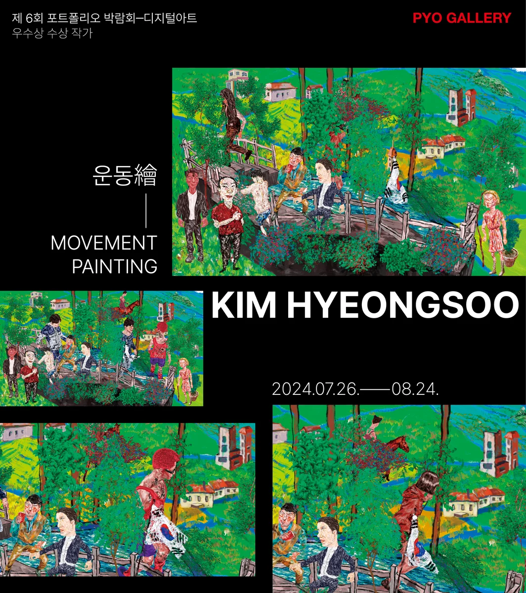 전시 개요 OVERVIEW 표갤러리는 2024년 7월 26일 (금) – 2024년 8월 24일 (토) 김형수의 개인전 《운동繪》를 개최한다. 김형수 작가는 전통적인 재현보다는 새로운 창조에 중점을 두는 독특한 예술가이다. 그의 예술 철학은 단순히 대상을 재현하는 것이 아닌, 그 이상의 무언가를 만들어내는 데에 있다. 김형수는 2022년 (재)서울예술재단과 (주)표갤러리가 공동주최하는 제 6회 포트폴리오 박람회에서 세 차례의 심사를 거쳐 7인의 작가로 선정되어 단체전을 가졌으며 최종 심사에서 우수상을 수상했다. 특히, 김형수 작가의 작업은 영상의 미디어작업을 회화로 풀어내었다는 점에서 기발함을 기발하다고 할 수 있는데, 이러한 특징은 그의 작품에 독창성과 감각적 깊이를 더하고 있어 현대 미술의 경계를 확장하며 새로운 가능성을 탐구하는 중요한 지점에 있다고 본다. 그는 미술의 역사에서 재현의 역할이 이미 사진기에 의해 대체되었으며, 모더니즘 이후로는 새로운 것을 보여줘야 한다는 조건 속에서 재현은 관습적인 코드와 판에 박힌 형식에서 벗어나기 어렵다고 주장한다. 작가의 이러한 창조적 접근은 모더니즘 화가들의 기본적인 자세와 맥을 같이한다. 모더니즘은 관습을 답습하지 않고, 화가의 감각을 투입하여 물질 회화의 새로운 지점을 만들어냈다. 특히 폴 세잔 이후, 터치와 행위의 동작성은 회화에 물질적 흔적을 남겨 시간성과 감각을 동시에 느낄 수 있게 했다. 그는 이러한 터치와 행위가 물질적 흔적으로 남아 감각될 수 있다면, 운동 또한 움직이는 감각으로 회화에 접목될 수 있다고 주장하며 운동이 없다면 시간의 부피도 만들어지지 않으며 운동이 곧 시간이라는 점을 강조한다. 이를 통해 시간도 회화의 일부가 될 수 있다고 본다. 이러한 실험적 접근은 김형수 작가의 예술 세계를 확장시키는 동시에, 회화의 새로운 가능성을 탐구하는 중요한 작업이다. 그는 불확실성 속에서도 새로운 지점을 찾고자 하는 열망으로 지속적인 회화 실험을 이어가고 있다. 김형수 작가는 현대 미술의 경계를 확장하며, 예술적 발명을 통해 새로운 감각적 경험을 제공하는 데 주력하고 있다.