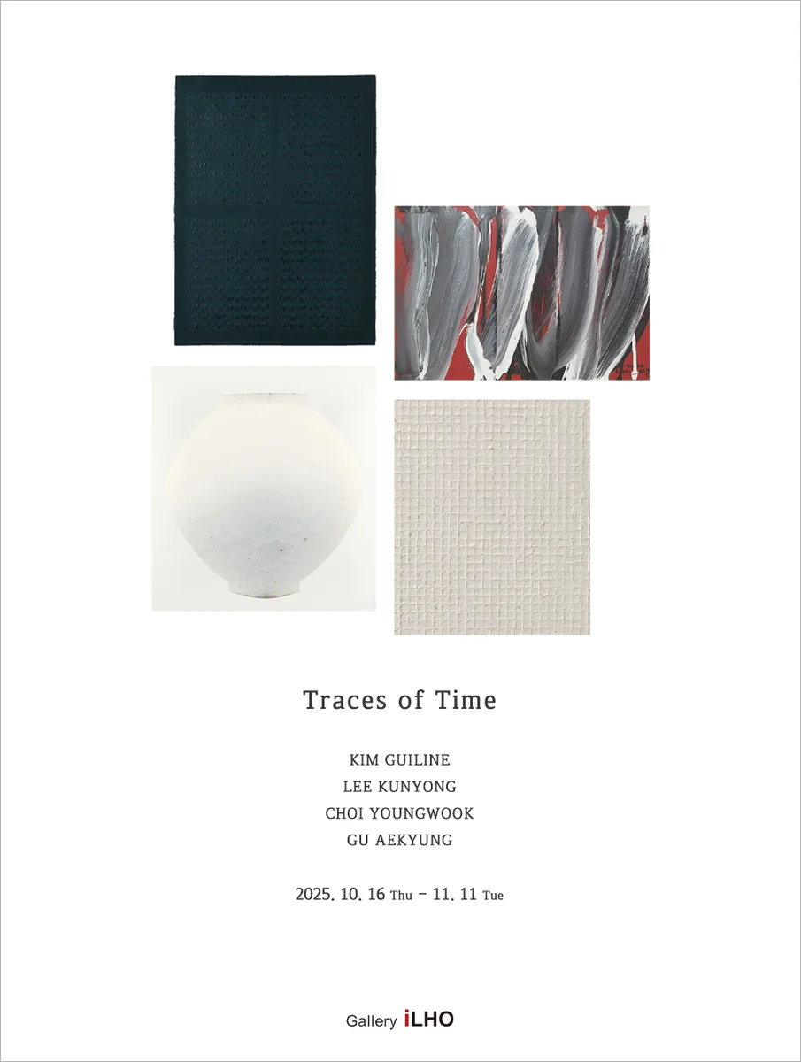 전시 개요 OVERVIEW 전시제목: Traces of Time 시간의 흔적 참여작가: 김기린, 이건용, 최영욱, 구애경 전시기간: 2025. 10. 16 (목) – 11. 11 (화) 관람시간: 10:30 – 18:00 (일, 월 휴관) 전시장소: 서울시 종로구 삼청로 127-2, 갤러리일호 작품목록: https://blog.naver.com/galleryilho/224041050869 전시개요 갤러리일호는 10월 16일부터 11월 11일까지 Traces of Time 시간의 흔적 : 김기린, 이건용, 최영욱, 구애경 4인전을 개최한다. 시간은 눈으로 볼 수 없지만, 우리 삶의 모든 순간에 흔적을 남긴다. 이번 전시 은 네 명의 작가가 각자의 방식으로 담아낸 시간의 이야기를 보여줌으로서 서로 다른 작품들을 한 공간에서 만나며, 관객은 다양한 방식으로 시간의 결을 느낄 수 있을 것이다. 김기린은 회화 평면의 깊이를 되살리기 위해 색채와 빛, 그리고 점과 격자의 구조를 탐구해왔다. 그의 화면은 마치 숨쉬는 피부처럼, 작가의 신체적 행위와 느리게 축적된 시간의 흐름을 기록한다. 투명성과 불투명성, 반사와 흡수의 긴장 속에서 그의 회화는 전통적 프레임의 한계를 넘어 무한한 공간감을 열어 보인다. 이건용은 1960년대부터 예술의 본질을 신체, 장소, 그리고 관람객과의 관계를 통해 실험해왔다. 그의 작업은 단순히 시각적 결과물이 아니라, ‘행위’ 그 자체를 예술의 중심에 놓는다. 신체와 공간이 서로를 규정하는 과정 속에서, 그는 시간의 흐름을 몸으로 새기며 예술의 존재론적 의미를 묻는다. 최영욱은 한국 전통 도자기 달항아리를 현대적 시각으로 재해석하며, 그 안에 축적된 역사와 인간적 서정을 되살린다. 그의 달항아리 연작은 단순한 형상 너머로 삶의 굴곡과 시간을 품은 넉넉한 그릇이자, 존재를 위로하는 상징으로 다가온다. 관람자는 작품 속에서 개인의 기억과 감정을 투영하며, 시간의 순환과 삶의 연속성에 대한 사유를 경험한다. 구애경은 수행적 반복의 몸짓을 통해 본질에 다가가려 한다. 한지라는 전통적 매체의 물성과 그리드의 구조적 질서를 바탕으로, 그녀의 작업은 수평과 수직의 교차, 겹침과 떼어냄을 통해 시간의 층위를 새긴다. 반복과 변주의 과정 속에서 화면은 물질이자 오브제로 변모하며, 그 자체로 시간의 흔적을 간직한다. 이렇듯 네 명의 작가가 각기 다른 매체와 태도로 기록한 시간의 흔적을 보여준다. 이들의 작업은 소멸과 생성, 행위와 기록, 전통과 현대라는 상이한 층위에서 만나며, 시간의 본질을 다면적으로 사유할 수 있는 장을 마련한다. 관객은 이 흔적들 속에서 자신만의 시간의 감각을 발견하게 될 것이다.
