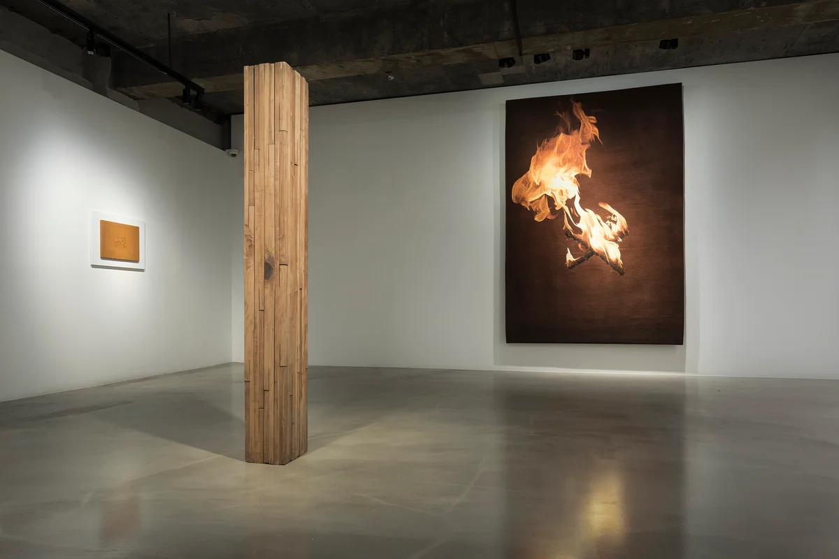 전시 개요 OVERVIEW 갤러리바톤은 삼 인의 한국 현대미술 작가, 송번수, 박석원, 박장년이 참여하는 그룹전, 《더 높은 곳 대신에(In Lieu of Higher Ground)》를 2020년 1월 30일부터 2월 29일까지 개최한다. 전시는 전후 한국 현대미술이 태동기를 거쳐 현재의 동시대성과 다원화된 정체성을 갖추기까지, 평생에 걸쳐 화업에 매진하며 ‘한국 현대미술’이라는 문화적 지형의 혼성적 형성 과정에 개입하며 지대한 영향을 끼쳐 온 삼 인의 원로, 작고 작가의 화업을 조명하고자 마련되었다. 물아일체의 자세로 미술을 대하여 왔기에 삶이 곧 자신의 예술적 궤적이었던 세 작가의 위업은 전시 제목인 ‘더 높은 곳 대신에’로 은유하고자 하였다. 이들은 개인의 영달과 유명세를 좇지 않고 평생을 탐구하듯 자신의 미술 세계의 미학적 완성과 형상화에 주력해 왔기에, 한국 현대미술이라는 지형에 높은 봉우리를 더하기보다는 구도자적 자세로 미답의 영역을 탐구하고 묵묵히 외연을 넓혀 왔다고 감히 이야기할 수 있다. 송번수(b. 1943) 작가는 작가이자 하나의 인간으로서의 존재에 대한 내밀한 종교적 성찰이 본격적으로 작품으로 승화하던 90년대 초부터의 후기 페인팅과 대형 타피스트리 작품을 선보인다. 판화에서 타피스트리로의 전환을 시도한 80년대부터 오랜 시간 시행착오를 거치며 연마한 테크닉이 본격적으로 만개한 시점이기도 한 이 시기부터, 작가는 인류의 대속자이신 예수님의 고난을 상징하는 기독교적 도상인 가시와 십자가를 주제로 한 작품을 주로 제작하였다. 작가에 의해 세밀하고 능란하게 다루어진 굵은 색실들은 특유의 잔 굴곡을 형성하며 조명 아래에서 극적인 효과를 연출하고, 연출된 이미지의 함의를 엄중하게 숙고하게끔 이끈다. 이러한 가시의 상징성에 대한 작가의 주목은 2000년대 페인팅에서 새로운 양상으로 등장하는데, 실제 캔버스를 관통하여 솟아오른 듯한 가시 형태의 부조 군집은 화면에 팽팽한 긴장감과 함께 고통과 희생, 암울과 희망 등의 다중적 심상에 실체적으로 접근케 하는 매개로 작용한다. 박석원(b. 1941) 작가는 일생에 걸친 탐구 과제이자 키워드라고 할 수 있는 ‘적(積)’ 개념이 정착되던 시기인 1970–80년대의 목조각 작품을 선보인다. 이 시기에 작가는 나무나 돌 등 자연을 근원으로 하는 소재의 순수한 물성에 주목하고 이러한 물성에 인위적인 정격성과 리듬을 부여함으로써, 물성에 내재하여 있던 자연성을 드러내는 ‘환원의 가시성’에 집중하는 태도를 견지하였다. 〈Mutation-Relation(변용-관계)〉로 명명된 시리즈들은 나무의 결과 고유의 색을 고스란히 드러낸 채 특정한 패턴에 의해 재차 재단된 모습을 띤다. 나무는 물결 모양, 사선의 중첩, 사람의 관절과 유사한 접합부 등의 인위적 변용을 무저항적 태도로 수용하고 형상이 뿜어내는 조형적 상징만을 부각하는 매개로 작용한다. 이처럼 나무가 몰개성적으로 조각의 소재로만 충실한 지점에 머무름은 작가가 ‘적’의 개념을 떠올리고 발전시켜 감에 있어, 소재로써 적극 활용한 이유이기도 하다. 극사실주의 기법으로 마포에 마포의 형상을 재현함에 평생을 천착해 온 박장년(1937–2009) 작가는 각 시기적 특성을 가늠해 볼 수 있는 대표작들을 선보인다. 그의 60년대 작품에서 드러나는 두터운 색조의 색면이 경계를 구축하고 부유하는 듯한 모습은 앵포르멜의 일시적 세례를 보여주고 있고, 그 이후부터는 소재로서의 마포가 다양한 외형으로 분한 모습의 재현에 주력해 왔음은 주지의 사실이다. 흥미롭게도 재현 대상의 극단적인 세밀함을 통칭하는 극사실주의는 작가의 작품을 실효적으로 전유하지 못하는데, 이는 재현의 대상이 된 마포가 그 시각적 명료함에도 불구 여전히 구상의 영역과 거리를 두고 있기 때문이다. 즉, 무언가 개념적으로 이해되고 수용되어야 하는 것을 의도적으로 정밀하게 외피만 재현해 놓은 것과 유사한 상황이다. 작품과 작품간 중요한 식별 장치로서의 주름은 일종의 시각 언어로서 기능하는데, 평면에서 드러나기 위해서는 자신이 아닌 그 주변부가 칠해져야 하는 운명은 ‘환영’과의
