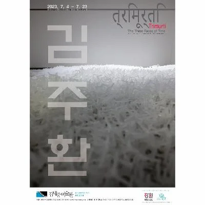 ‘깎고 구축하다 보면’ 안소연 (미술비평가) 김주환의 조각은 ‘중간존재(interbeing)’를 자처한다. 들뢰즈(Gilles Deleuze)와 가타리(Félix Guattari)가 ‘리좀(rhizome)’의 특성으로 설명한 개념이 중간존재다. 말하자면, 시작도 끝도 없이 서로 연결되어 비위계적으로 확장해 가는 “되어감(becoming)”을 근거로 하는 개념이다.[*제이 에멀링, 『20세기 현대예술이론』, 김희영 옮김, 미진사, 2015, pp. 197-209 참고.] 그동안 김주환은 일종의 연금술적인 감각으로 임의의 형상이 공간 속에 출현할 “상황”을 꾸려왔다. 어떠한 물질이 됐든 사물이 됐든, 그는 그것의 (유일무이한) 근원적 형태에서 벗어난 다수의/복수의 형상으로 연결을 시도한다. 그것은 한 점에 닿고자 하는 목적도 없고, 우회하고 변환하며 연쇄하는 형상에 대한 사유를 이끈다. 연금술사처럼 철을 녹여서 일체의 양가적인 구분이 상쇄되는 형태의 변환을 시도했던 그간의 작업을 떠올려 볼 때, 김주환은 공간 속에서 “형상”의 출현 그 자체 보다는 그러한 사건을 발생시키는 끝없는 시간적 “변환”에 더욱 몰두해 왔음을 짐작해 볼 수 있다. 무게와 강도, 색채와 질감, 그 재료가 본성적으로 갖고 있는 압도적인 분위기와 대면하여, 김주환은 그동안 철을 다루는 연금술적 조각가로서 제 역량을 꾸밈없이 솔직하게 드러내 보여왔다. 동시에 그는 그러한 재료의 변환에 관한 사유를 “자연”과 그것이 이루는 “풍경”에서 얻은 깊은 경험적 통찰로 실체화 한다. 예컨대, 빛과 바람과 물결 등이 조성하는 자연의 풍경을 통해 지각하고 경험한 일련의 사건을 조각적인 재료와 형태의 관계에 부여하는 것처럼 말이다. 사실 조각가인 그는 땅을 경작하며 거기서 소산을 얻는 농부의 삶을 병행한다. 조각가와 농부의 삶은 그에게서 꽤나 자족적인 모습으로 비춰지곤 하는데, 그 노동의 목적이 마치 (연금술적인) 그 행위 자체에 있는 것처럼 보이기 때문이다. 내가 보기에 그 둘의 노동은 서로 연결되어 미세한 차이 속에 교차하며 서로를 반영하는 가운데, 조각은 점차 농부의 땅을 닮아가고 밭의 소산은 나름의 조각적 의미를 갖추어 가는 것 같다. 그런 의미에서, 김주환의 조각은 어떤 형상으로의 되어감을 향한 잠재력을 좇는다. ** 그의 최근 작업은 산과 물과 땅에 관한 사유에 닿아 있다. 이들을 관통하고 있는 화두는 “흐름(flow)”이라고 할 수 있을 텐데, 이는 그의 철 용접 작업에서도 가장 포괄적인 의미를 지녔던 개념으로 들뢰즈와 가타리의 리좀에 관한 논의와도 많이 닿아 있다. 이전 작업에서 종종 언급됐던 “물결” 혹은 “파동”처럼, 그는 이 세계 안에 작동하고 있는 힘의 물리적 이동과 변환이라 말할 수 있는 “흐름”에 관한 추상적 사유를 조형적 원리로 구축해 왔다. 말하자면, 삼차원의 현실 세계를 작동시키는 물리적인 힘과 그것에 대한 추상적 사유를 거쳐 조형적 구축으로 나아가는 것이다. 최근 작업의 재료와 형태에 있어서 다소 큰 변화가 보이긴 해도, 그의 조형적 사유를 매개하는 개념에 있어서는 크게 달라진 게 없다고도 할 수 있다. 최근 작업에서 김주환은 길가의 고사목을 (허가를 받고) 벌목해 가져다가 껍질을 벗기고 형태를 다듬어 땅 위에 다시 세울 수 있는 조각의 형태로 바꾸어 놓았다. 그 첫 단계를 보여준 전시가 ⟪물의 여정, 나무의 길⟫(2022)이다. 그는, 어떤 것은 벽과 바닥 사이에 기대어 놓고, 어떤 것은 벽에 걸고, 또 어떤 것은 땅과 받침대 위에 홀로 세워 놓았다. 이에 대하여 ‘삼수령(三水嶺)’을 작업의 모티프로 제시한 바 있는데, 삼수령이라는 지역의 지리적 특성을 추상적인 조형 개념으로 전환하여 “발산과 수렴”의 원리를 도출한 셈이다.[*작가의 “삼수령-물의 여정: 발산과 수렴의 형태학” 전시 기획안 참고] 그는 삼수령의 지질과 지형의 특성상 산과 물의 줄기가 갈라지고 다시 만나는 발산과 수렴의 원리를 파악해, 이를 조형적으로 사유할 수 있는 일련의 재료와 형태의 관계를 모색했다. 요컨대 ⟪물의 여정, 나무의 길⟫은 땅과 물에 관한 개념을 탐구