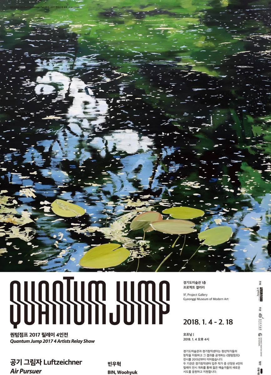 퀀텀 점프 2017 릴레이 4인전 《빈우혁 – 공기 그림자 Luftzeichner》 2018. 01. 04. ~ 2018. 02. 18. 경기도미술관 프로젝트갤러리 경기도미술관은 ‘퀀텀점프 2017 릴레이 4인전’의 마지막 전시로 1월 4일부터 2월 18일까지 빈우혁의 《공기 그림자》를 개최합니다. 빈우혁 작가는 팍팍한 삶이 주는 고통을 차단하고자 잠잠히 숲을 그리는 일에 몰입해왔습니다. 지난 5년간 작가가 꾸준히 그려온 ‘독일의 숲’들은 작가에게 있어서 오랜 시간 지속된 불우한 환경과 과거의 기억들로부터 비롯된 심리적 동요와 복잡한 심정을 비우고 평정과 치유를 경험하게 하는 상징적인 공간입니다. 초기 작품들에서 주로 목탄을 가지고 다듬어지지 않은 복잡한 감정을 표현적으로 드러냈다면, 이번 전시에서 선보이는 작품들에서는 강렬해진 색감과 면밀한 묘사 등 재료와 기법적인 변화들을 통해 차분해진 심리 상태와 정리된 감정들을 엿볼 수 있습니다. “숲과 숲을 위시한 풍경, 혹은 그려진 대부분의 결과물은 작가 자신이 감당할 수 없는 개인적 슬픔과 좌절에 관한 반발이자 부산물입니다. 유년 시절부터 머물 곳 없을 때 숲에서 위로를 찾던 습관의 끈은 성인이 되어서 숲과 비슷한 곳에 조차 가까이 할 수 없게 된 현실을 도피하여 결국 독일에 있는 숲에 이르러서야 위로를 연장할 수 있게 해주었습니다. 슬플수록 더 기쁘게 웃으며, 괴로울수록 고요하게 자신을 위로하고 감정을 숨길 수 있도록 그리는 행위와 소요(逍遙)의 과정을 받아들이고, 나를 제외한 모두에게는 이야기가 없는 듯한 풍경을 통해서 침묵의 이유를 역설적으로 드러냅니다.” (작가 노트에서) 장소 경기도미술관 프로젝트갤러리 참여작가 빈우혁 참가비 무료 주최·주관 경기문화재단 / 경기도미술관, 경기창작센터 협찬 산돌구름