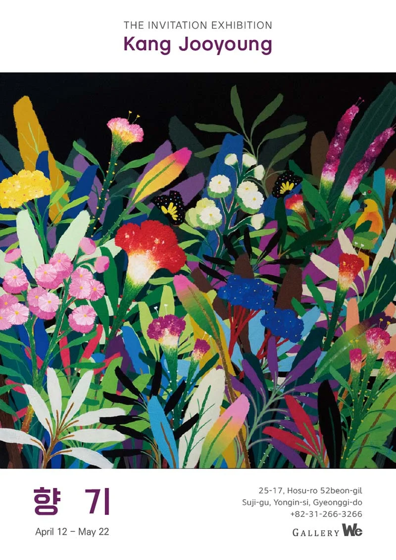 전시 개요 OVERVIEW 갤러리위는 봄의 절정 4월, 탐미적 꽃의 세계를 자유롭게 펼치는 강주영 작가 초대전 ‘향기’를 개최한다. 강주영 작가는 꽃과 나무, 나비로 가득한 환상적 숲의 모습을 캔버스 위에 연출한다. 검은색으로 배경을 암전하고, 멀고 가까움이 느껴지게 자연을 쌓는다. 색채를 혼합하지 않은 순도 100%의 순색 아크릴 물감을 주로 사용해 높은 채도와 밝은 명도를 표현한다. 물감을 두텁게 올려 자연스럽게 윤곽을 부각해 입체적 화면을 완성한다. 비현실로 느껴지는 진하고 선명한 색(色), 단순화했지만 섬세하게 표현한 형(形)의 조화가 강렬한 에너지를 발산한다. 색의 대비와 조화, 원근과 명암, 입체적 질감이 독특하게 펼쳐진 그의 작품은 현실과 상상을 자유롭게 오가는 꽃의 판타지다. 개성이 담긴 신비한 꽃들 속에서 떠다니는 향기가 느껴지는 듯하다. 강주영 작가는 서울, 대구, 부산 등에서 19회의 초대 개인전을 열었고, 고금미술선정작가상, 구상미술대전 특별상 및 우수상, 대구미술대전 특선 등을 수상했다. 국립현대미술관, 대구지방검찰청, 경북도청 신청사, 대구은행 본점, TBC방송국, 대구 칠곡 경북대학교병원, 김해 ISQUARE Hotel과 홍콩 Marco Polo Hotel 등에 작품이 소장되어 있다. 이번 전시를 통해 강주영의 풍요로운 꽃 정원에 매혹될 것이다.