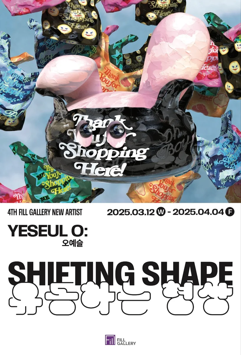 전시 개요 OVERVIEW 오예슬 작가 ⟪ 유동하는 형상 _Shifting Shape ⟫ 필 갤러리는 공모 형식의 신진 작가전을 통해 매년 우리나라 미술계에 새롭고 역량 있는 작가들을 선보이고 있다. 올해로 4회차를 맞이한 공모에서는 조규성, 손유화, 오예슬 작가가 선정되었으며, 각 작가의 전시는 지난해 12월부터 올해 3월까지 개인전 형태로 진행되고 있다. 세 번째 전시작가인 오예슬의 ‘Shifting Shape’ 전시는 3월 12일부터 개최되며, 작가의 독창적인 디지털 아트 세계를 선보인다. 오예슬은 뉴욕을 기반으로 활동하는 디지털 아티스트로, AR(증강현실)과 3D 기술을 활용한 작업을 통해 디지털 세계 속 자아를 탐구하고 변화와 성장을 시각적으로 표현해왔다. 특히 대표 프로젝트 ‘Metabun_ny’는 디지털 자아를 중심으로 한 작업으로 큰 주목을 받았다. 이번 ‘Shifting Shape’ 전시는 작가가 서울을 떠나 뉴욕에서 겪은 도전과 성장, 변화의 과정을 AR을 통해 탐구하는 작품들로 구성된다. ‘Shifting Shape’에서는 타인의 시선 속에서의 자아, 내가 바라보는 자아, 그리고 내가 되고 싶은 자아가 교차하고 충돌하는 과정을 다룬다. AR 기술을 활용하여 현실과 비현실의 경계를 넘나드는 새로운 차원의 공간을 창조하는 이 전시는, 변화하는 자아의 여정을 관객이 직접 경험할 수 있게 한다. 오예슬은 AR을 통해 “불완전함에서 오는 자유로움”과 “불안정함에서 오는 도전”을 표현하며, 관객들에게 끝없이 변화하는 자아를 마주하게 만든다. 관객은 작가의 디지털 자아를 통해 자신만의 자아를 발견하고, 변화와 성장을 경험할 수 있는 기회를 얻는다. 이번 전시는 3D 디지털 아트와 증강현실(AR)을 매개로 한 혁신적인 예술적 접근이 돋보이며, 현대 디지털 예술이 제공할 수 있는 새로운 예술적 표현의 가능성을 탐구한다. 필 갤러리에서 펼쳐지는 오예슬 작가의 ‘Shifting Shape’ 전시는 디지털 아트와 AR 기술을 통해 끝없이 변화하는 오예슬 작가와 그 모습 속에서 또한 당신 자신을 발견하는 중요한 순간이 될 것이다. “ 손에 들린 쇼핑백은 순간 나를 채워주는 것 같지만, 조금 지나면 결국 아무것도 사지 않은 기분이 들게 된다. 배움과 경험 그리고 나를 돌보는 시간을 샀을 때, 그 순간들은 사라지지 않고 나를 가득 채운다. 이제 쇼핑백에 나를 채우는 값진 것으로만 고르고 골라서 담는다. “ <Thank you for Shopping Here!, 80cm x 80cm, archival giclée print on fine art paper, 2025 (1/1 Edition)> 작업노트 전시명 | ⟪ 유동하는 형상 _Shifting Shape ⟫ 참여작가 | 오예슬 전시장소 | 서울시 용산구 유엔빌리지길 24, 1F (제 1 전시실) 기간 | 2025. 3. 12 (수) – 4. 4 (금) 관람시간 | 화-토 11AM – 6PM 문의 | T. +82 02.795.0046 / E. fillgallery@naver.com