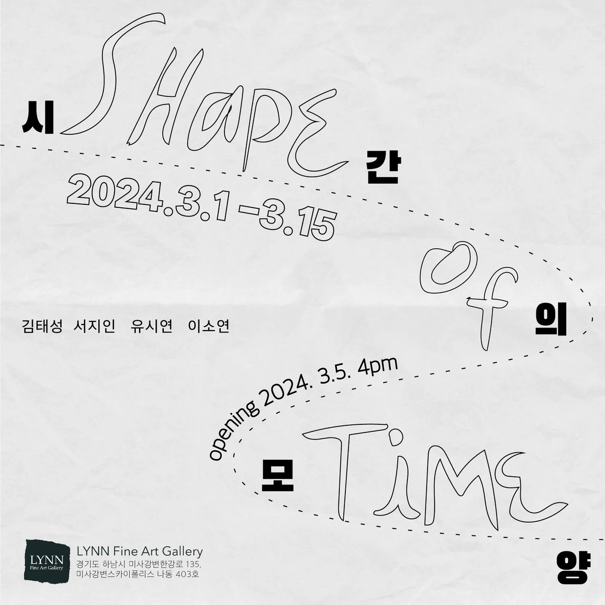 전시 개요 OVERVIEW <시간의 모양> 린파인아트 갤러리는 김태성, 서지인, 유시연, 이소연작가의 작품을 2024년3월1일부터 3월15일까지 전시중이다. ‘시간의 모양’이라는 작은 서점이 있다. 카페를 지나 지하로 내려가면 작지만 나름대로 소란스럽게, 켜켜이 자신들의 시간을 품은 책들이 책장에 기대어 있다. 우리는 다 각자의 시간을 산다. 시간은 매우 가변적이고 개별적이다. 그러나 그 시간이 모여 하나의 역사가 된다. 시간 위에, 시간 속에, 또 다가올 시간을 바라보며 시간의 모양 서점 안 책장에서 읽고 싶은 책을 꺼내듯 4명의 작가를 모아 전시를 한다. “시간의 모양” 전시에 참여하는 네 명의 작가는, 각자 독특한 시각과 접근으로 시간을 담는다. 이소연 작가는 개인의 기억을 표현하는데 시간이 관여한 기억의 흐려짐, 간추려지고 선명해진 그 모호함을 살아있는 기록으로 변환한다. 작가의 최근 작품은 개인적인 경험을 통해 얻은 감정과 기억을 너머 시간이 작품의 대지에 관여한 흔적도 적극적으로 수용한다. 서지인 작가는 특정 시기의 눈에 보이지 않는 기체와 감각을 시각화하여, 추상적으로 시간을 표현한다. 빛이 가진 속도와 에너지를 담아냄으로서 시간의 실체를 가늠 할 수 있다. 유시연 작가는 개인으로서 한 시기, 역할의 변화와 관계에 주목한다. 시간의 흐름에 따라 작가가 지나고 있는 역할을 수행하며 격는 갈등과 경험을 기반으로 작업한다. 상생할 수 있는 방법을 모색하며 캔버스의 모양, 지속가능한 재료에 대해 탐구하는 과정을 볼 수 있다. 마지막으로, 김태성 작가는 회화 자체를 물질로 여기며 대상화하는 작업을 통해 회화가 지닌 시간의 가치를 발굴한다. 이미지를 너머 시간 위에 독립된 존재로서 회화를 바라보고 적절한 거리를 제시한다. 시간이라는 공통 키워드를 염두하며 위 작가들이 어떻게 이미지 안에 흐르는 시간을 가두고, 작품 내에서 자체적인 흐름을 가지는 지, 시간이 회화라는 물질에 어떤 가치를 부여할 수 있는지를 모색하는 시간이 되기를 바란다.