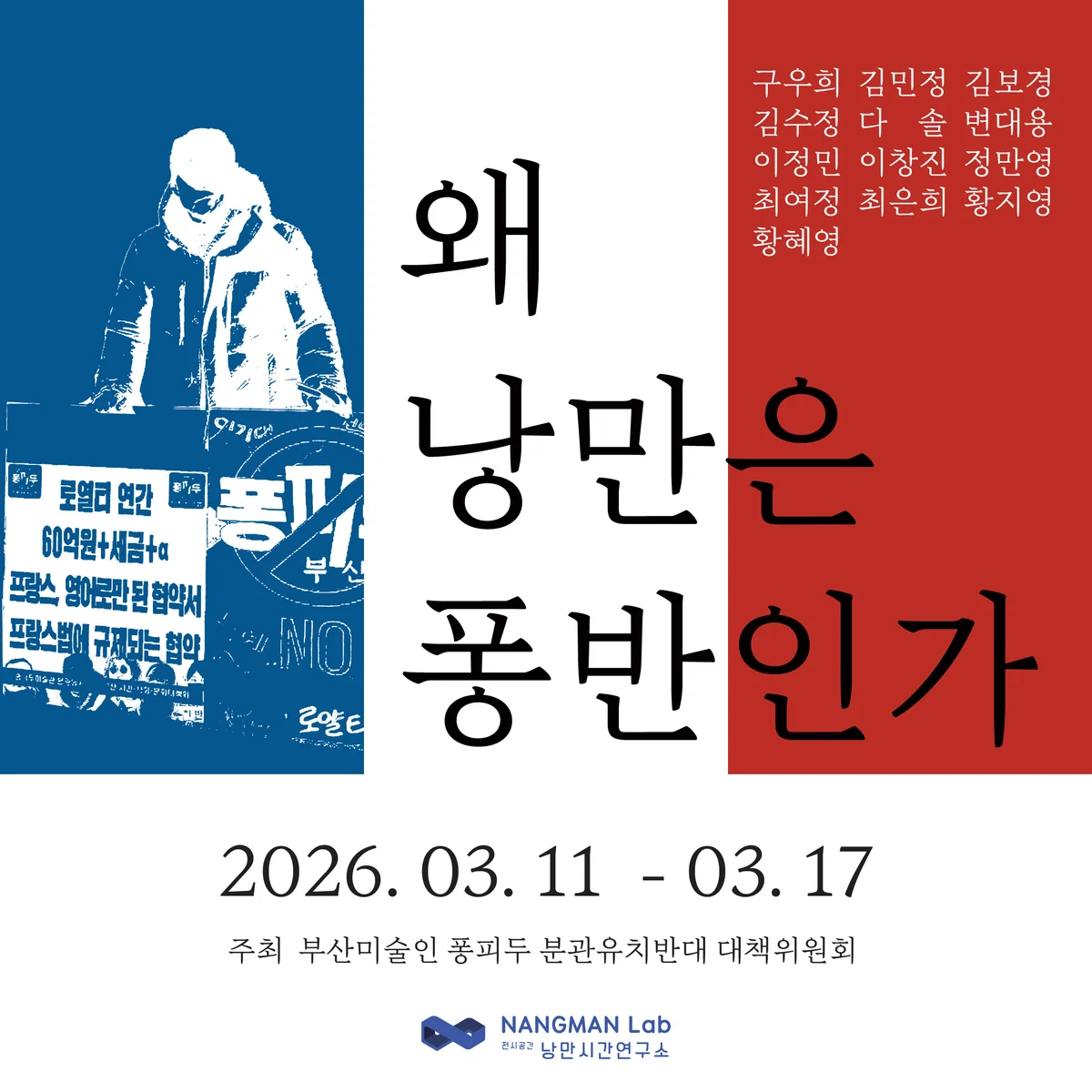 개요 전시 > 부산 전시 기간 2026.03.11.(수) ~ 2026.03.17.(화) 시간 10:30 ~ 18:30 장소 낭만시간연구소