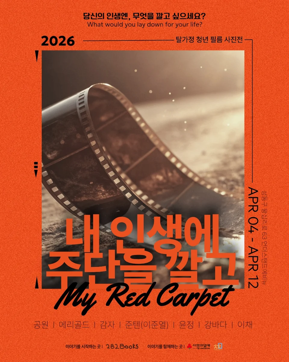 필름 카메라를 손에 쥔 탈가정 청년들이 앞으로 자신의 인생에 있었으면 하는 순간을 찍었습니다. 7명의 탈가정 청년의 앞에 펼쳐질 인생에는 어떤 순간이 기록될까요? 내 삶의 주인, 내가 걸어 갈 인생의 준단을 직접 깔고 있는 청년들의 청년들의 바람을 만나러 오세요. . 그리고, 생각해 보자구요. 내 인생엔, 무엇을 깔고 싶은지. . ※프로젝트 [궤도이탈:청년 독립 선언]은 서울 사회복지 공동모금회 아너소사이어티 ’청청모‘ 지원사업으로 진행됩니다. . * 탈가정 청년은 가정 내 폭력, 방임, 경제적 착취, 학대 등의 이유로 원가정과의 물리적, 경제적, 정서적 단절을 선택한 청년을 말합니다. . 282북스는 우리 사회의 다양한 이야기를 당사자들과 함께 문화예술 콘텐츠로 전합니다. 예술기반 사회적처방 프로그램을 통해 우리 사회의 시선이 미처 닿지 않는 곳의 사회적 스토리를 발굴하고 당사자들의 목소리를 담은 문화예술 콘텐츠를 제작해, 사회에 바른 이슈를 제기하는 282북스가 되겠습니다. - 출처 282북스